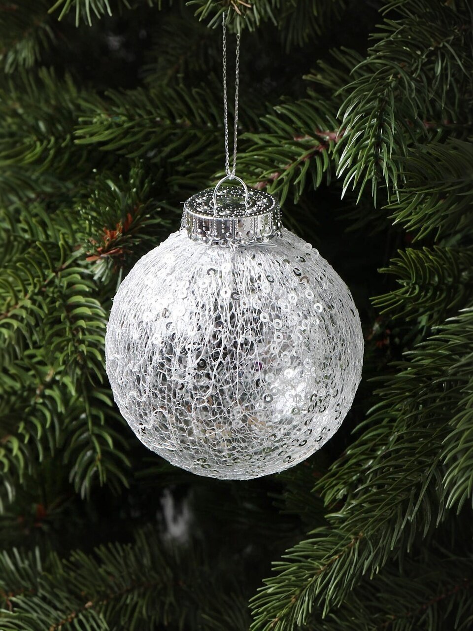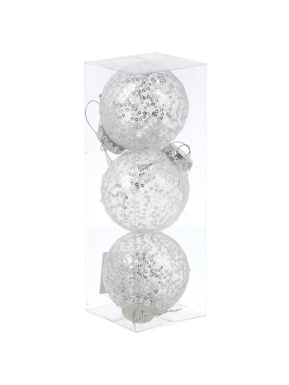 Эффектный набор шаров 8 см (3 шт): серебро с пайетками шампань — стильное украшение для дома, дачи или подарка. Не бьются, подходят для уличной ёлки.