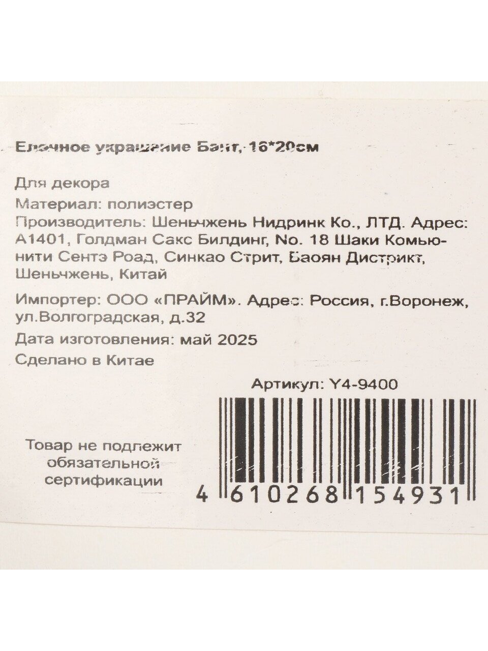 Вы можете приобрести «Елочное украшение Бант, 16х20 см, текстиль, белый, Y4-9400» и другие товары в нашем интернет-магазине в Обнинске по низким ценам и с бесплатным самовывозом.
