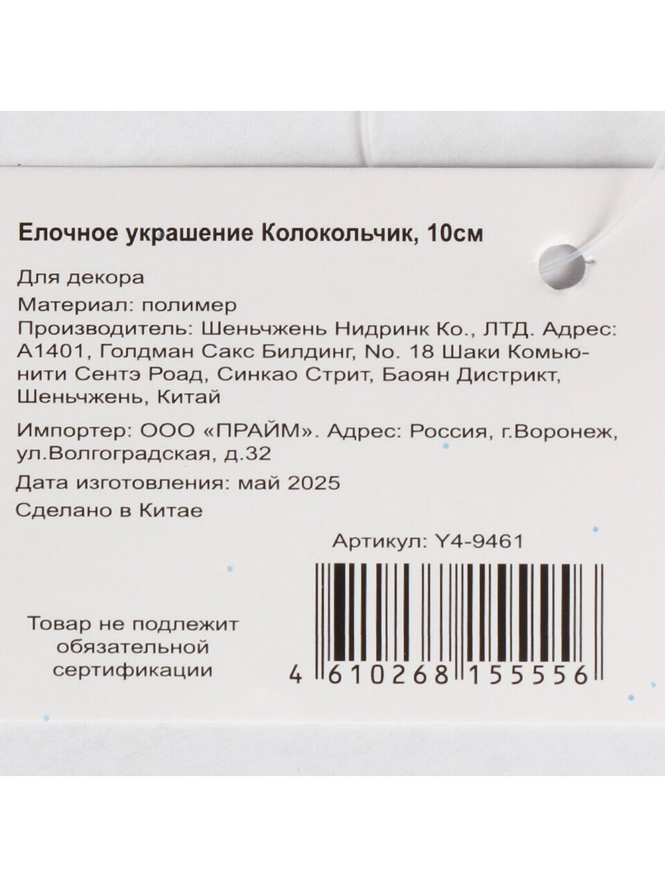 Высота колокольчика — 10 см, это крупное украшение, которое хорошо смотрится на больших и средних елках, как в доме, так и на улице.