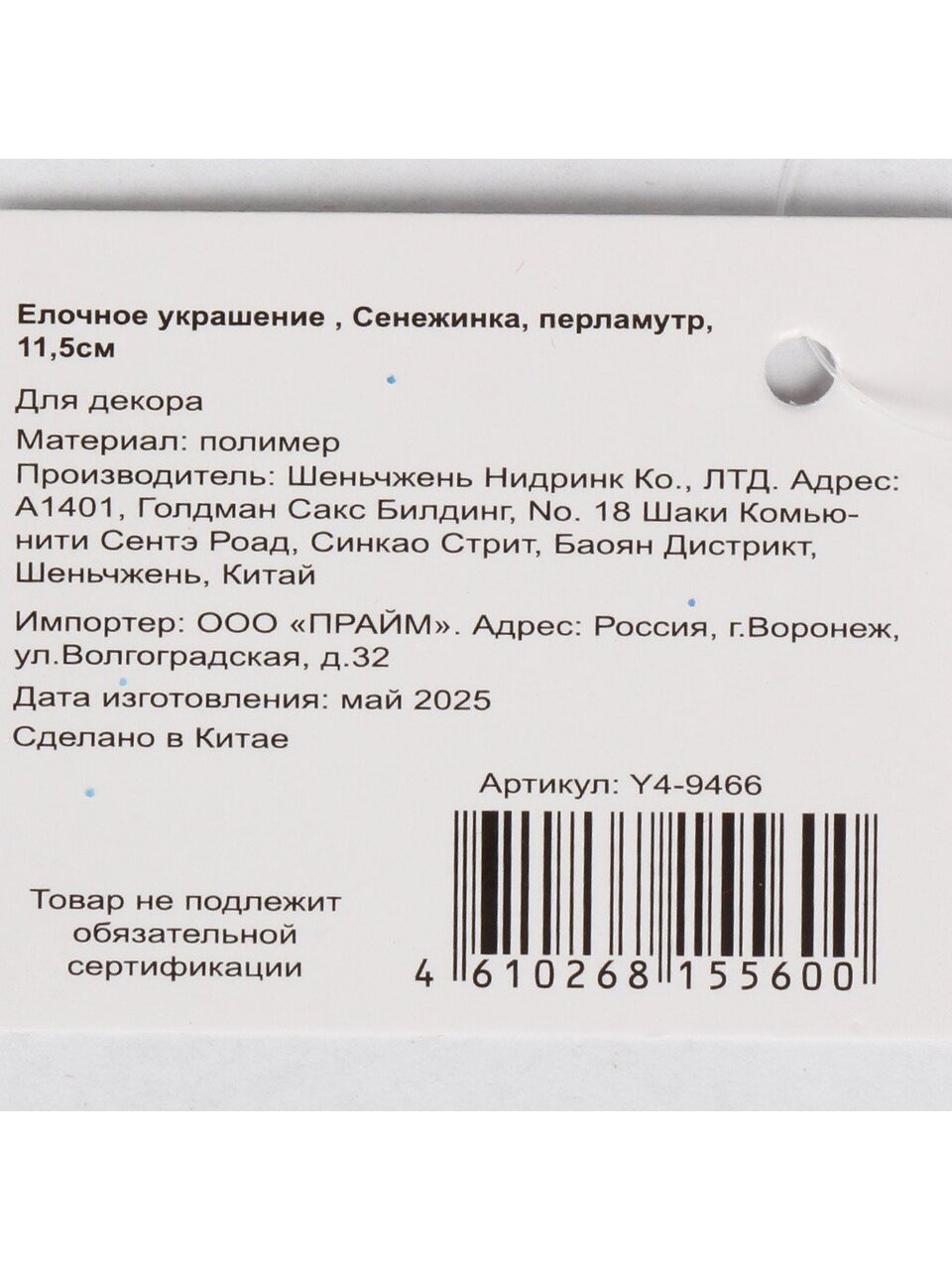 Вы можете приобрести «Елочное украшение Снежинка, перламутр, 11.5 см, пластик, Y4-9466» и другие товары в нашем интернет-магазине в Борисоглебске по низким ценам и с бесплатным самовывозом.
