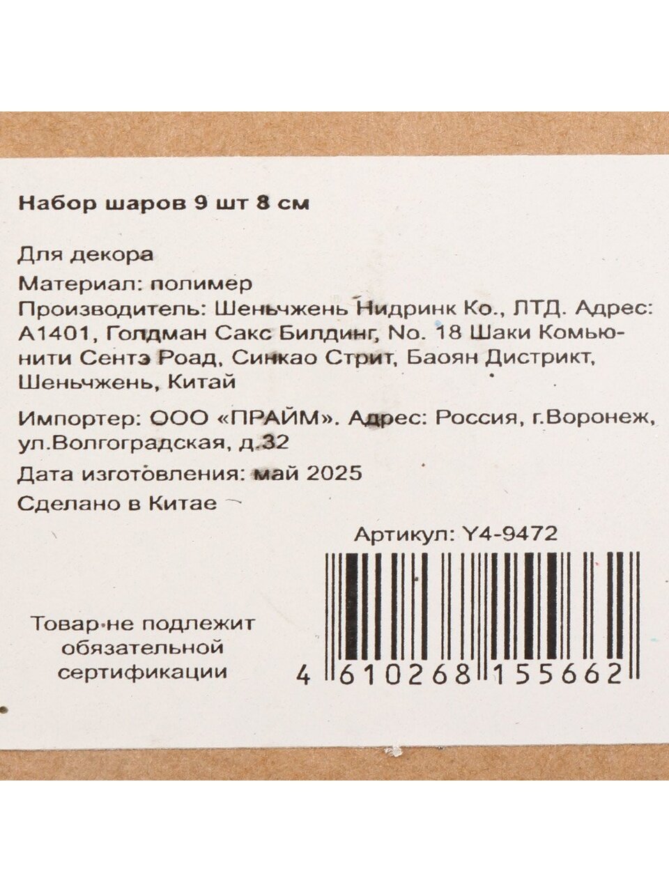 Набор шаров 9 шт, серебро, 8 см — это практичный выбор для тех, кто ищет, какие елочные игрушки купить недорого для дачи или квартиры. Полимерные шары с блестками устойчивы к ударам и не разобьются даже при падении, что особенно важно для семей с детьми и животными. Серебристый цвет гармонично впишется в любой интерьер, а размер 8 см считается средним и оптимально смотрится как на компактных, так и на уличных елках.