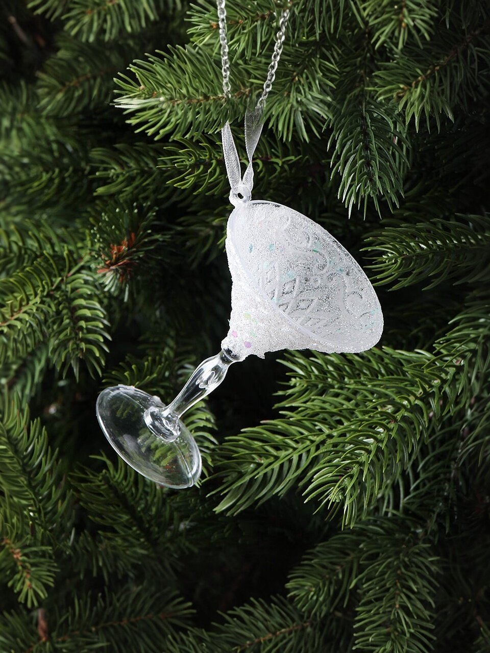 Елочное украшение в форме бокала — трендовый выбор для тех, кто ищет оригинальные и недорогие игрушки на ёлку для дачи или квартиры. Благодаря материалу пластик, украшение не боится падений и подходит для семей с детьми и животными. Перламутровое покрытие и блестки создают эффект роскоши на любой ёлке, а прозрачный цвет универсален для любого стиля декора.