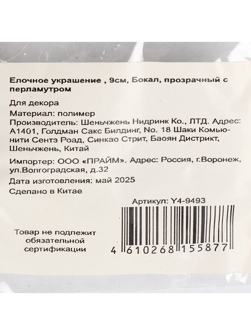 Вы можете приобрести «Елочное украшение Бокал, прозрачный с перламутром, 9 см, пластик, Y4-9493» и другие товары в нашем интернет-магазине в Борисоглебске по низким ценам и с бесплатным самовывозом.
