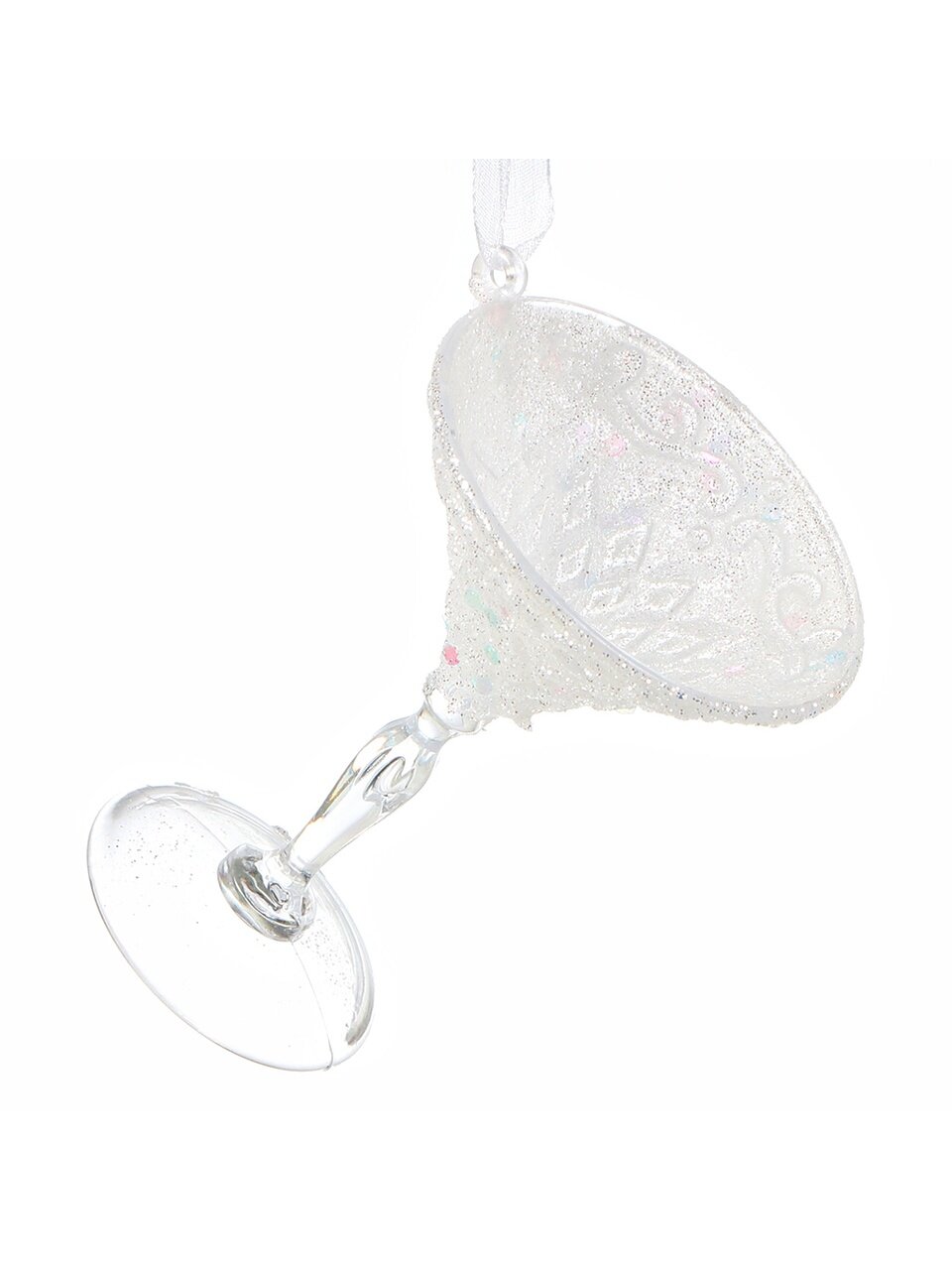 Высота бокала — 9 см, крепление на подвеске. Цвет — прозрачный с перламутром и блестками, материал — пластик, не входит в набор.