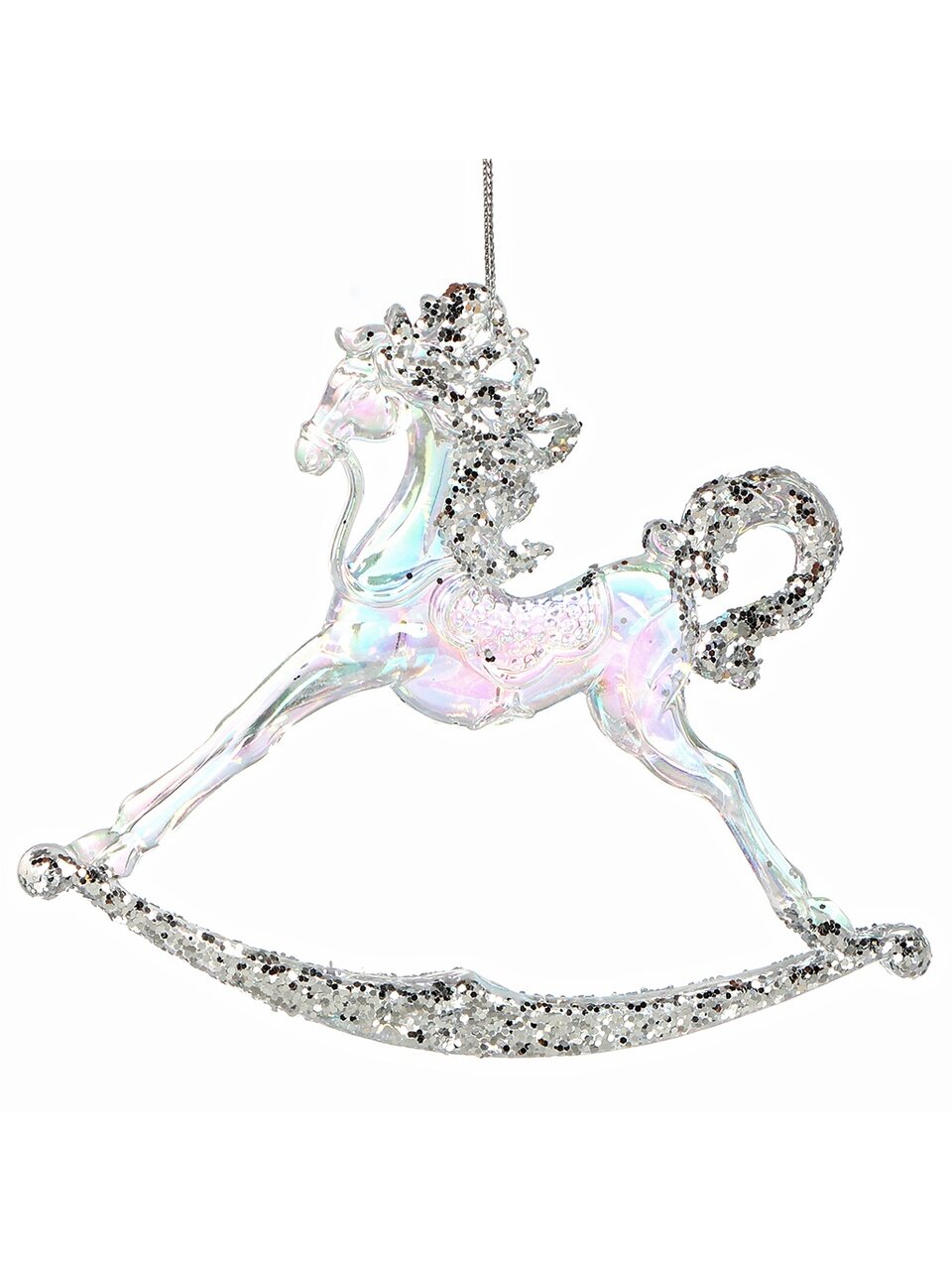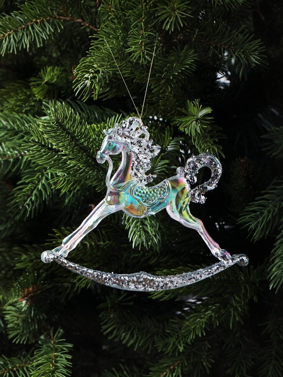 Елочное украшение «Лошадь» 11×14 см — стильное и небьющиеся решение для новогодней елки, дачи или подарка. Прозрачность с серебром, символ 2026 года, выгодно подчеркнет ваш интерьер.