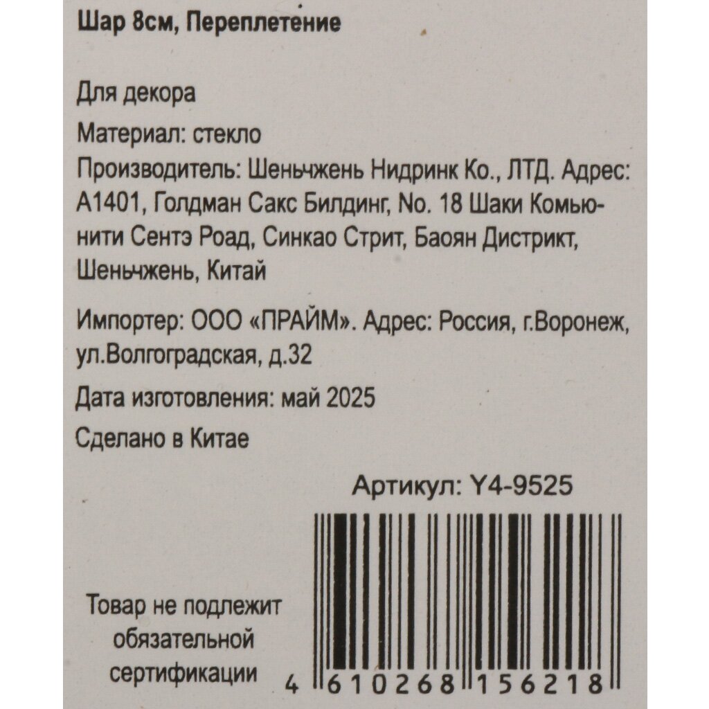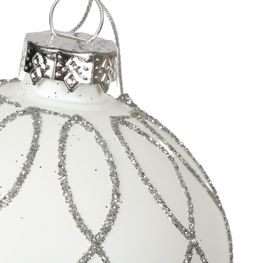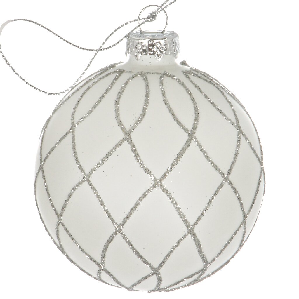 Елочный шар Переплетение, белый с серебром, 8 см, стекло, Y4-9525