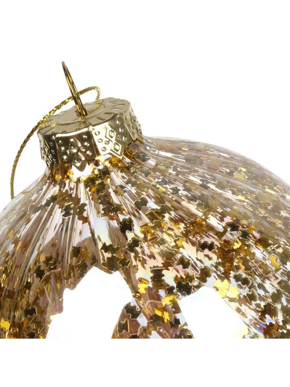 Елочный шар Блеск 8 см из прозрачного стекла с золотым декором — стильное украшение для новогодней елки, эффектно преображающее любой интерьер. Безопасная подвеска, подходит для подарка.