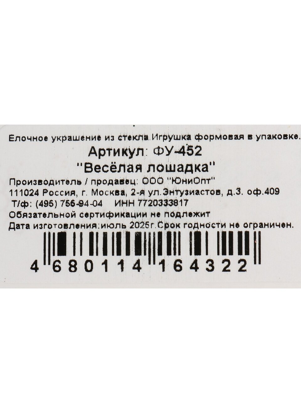 Вы можете приобрести «Елочное украшение Веселая лошадка, 10 см, стекло, ФУ-452» и другие товары в нашем интернет-магазине в Нижнем Новгороде по низким ценам и с бесплатным самовывозом.