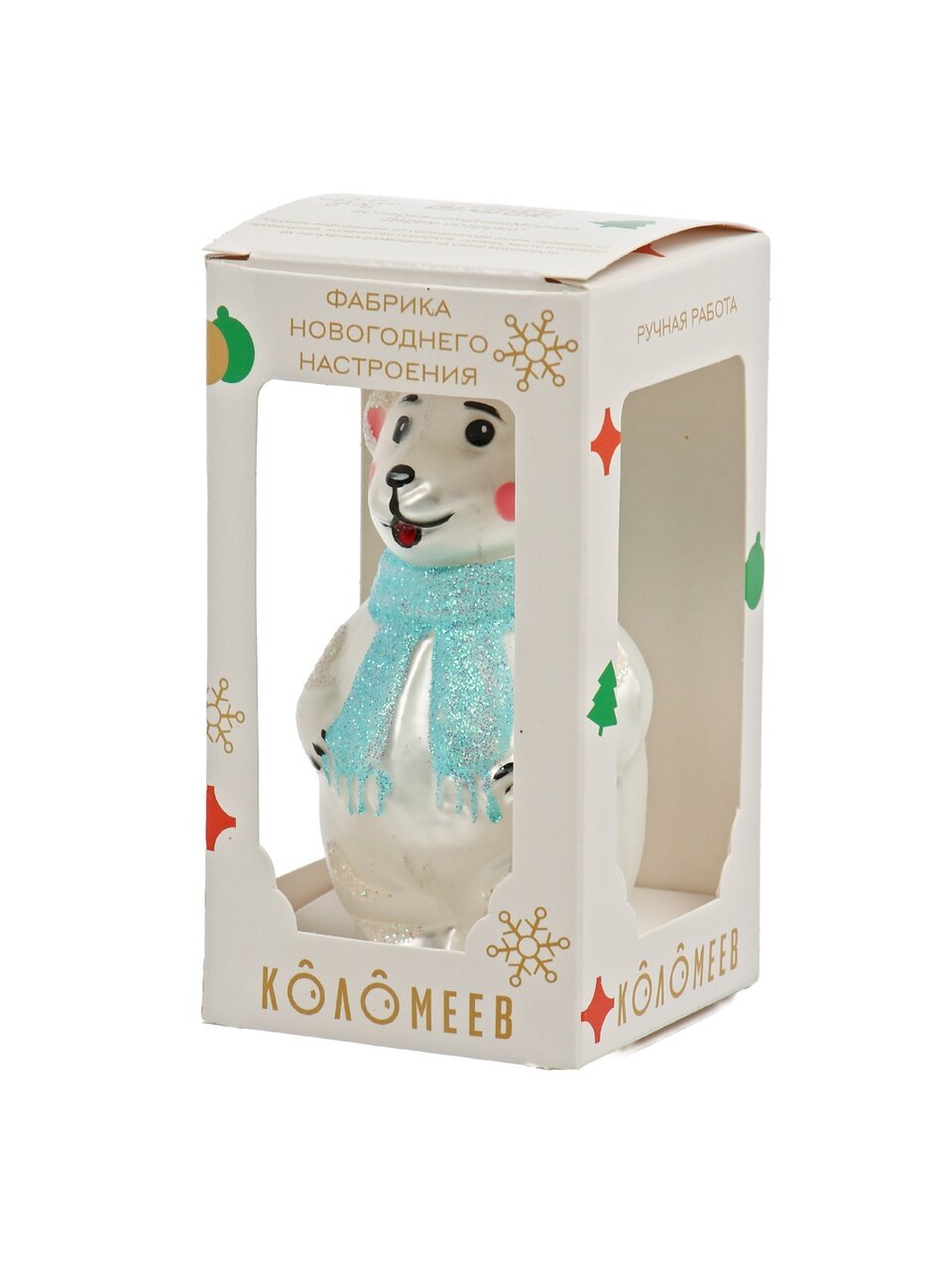 Елочное украшение «Мишутка в шарфе», 9 см, из стекла: стильный акцент для новогодней елки, подарок и декор в одном — безопасно, долговечно, премиум-упаковка.