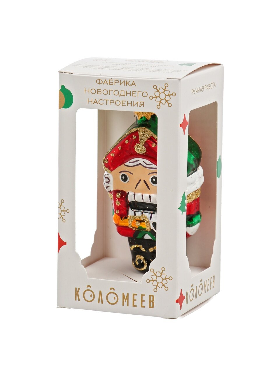Елочное украшение Щелкунчик сказочный из стекла, 9 см — стильный акцент для новогодней елки и оригинальный подарок, который создаст атмосферу уюта и волшебства.