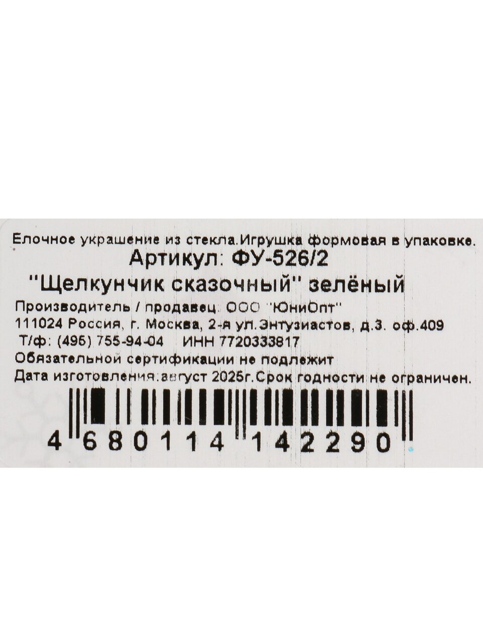 Вы можете приобрести «Елочное украшение Щелкунчик сказочный, зеленое, 9 см, стекло, ФУ-526/2» и другие товары в нашем интернет-магазине в Серпухове по низким ценам и с бесплатным самовывозом.