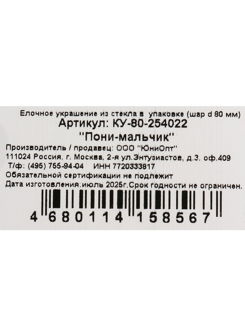 Елочный шар Пони-мальчик 8 см — эксклюзив из стекла с ручной росписью: стильный акцент для новогодней елки, уютного подарка или декора дома.