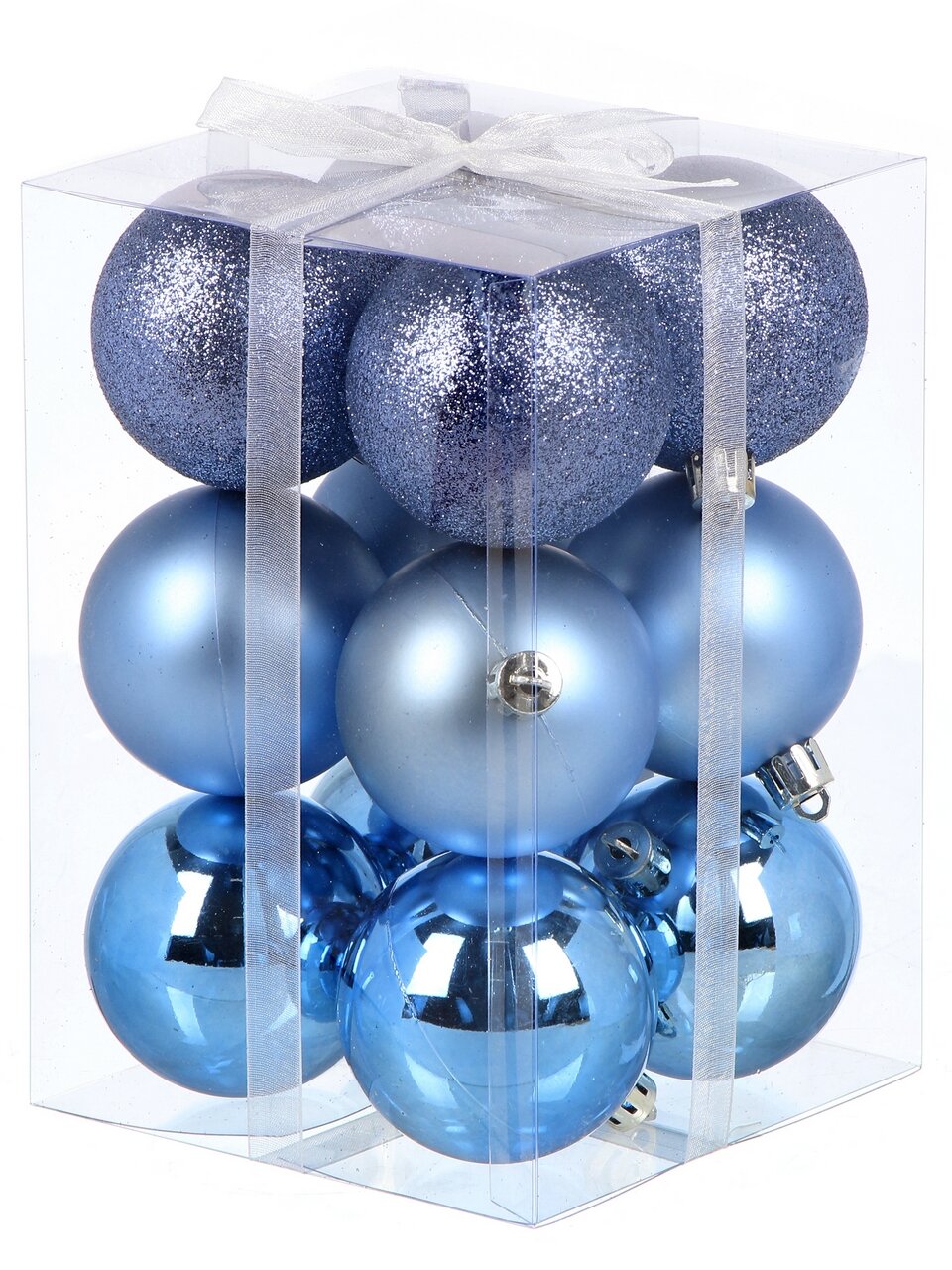 Елочные шары 12 шт, синий, 6 см: стильное украшение для новогодней елки, не бьются, подходят для дома, дачи и подарка — выгодная цена и быстрая доставка.