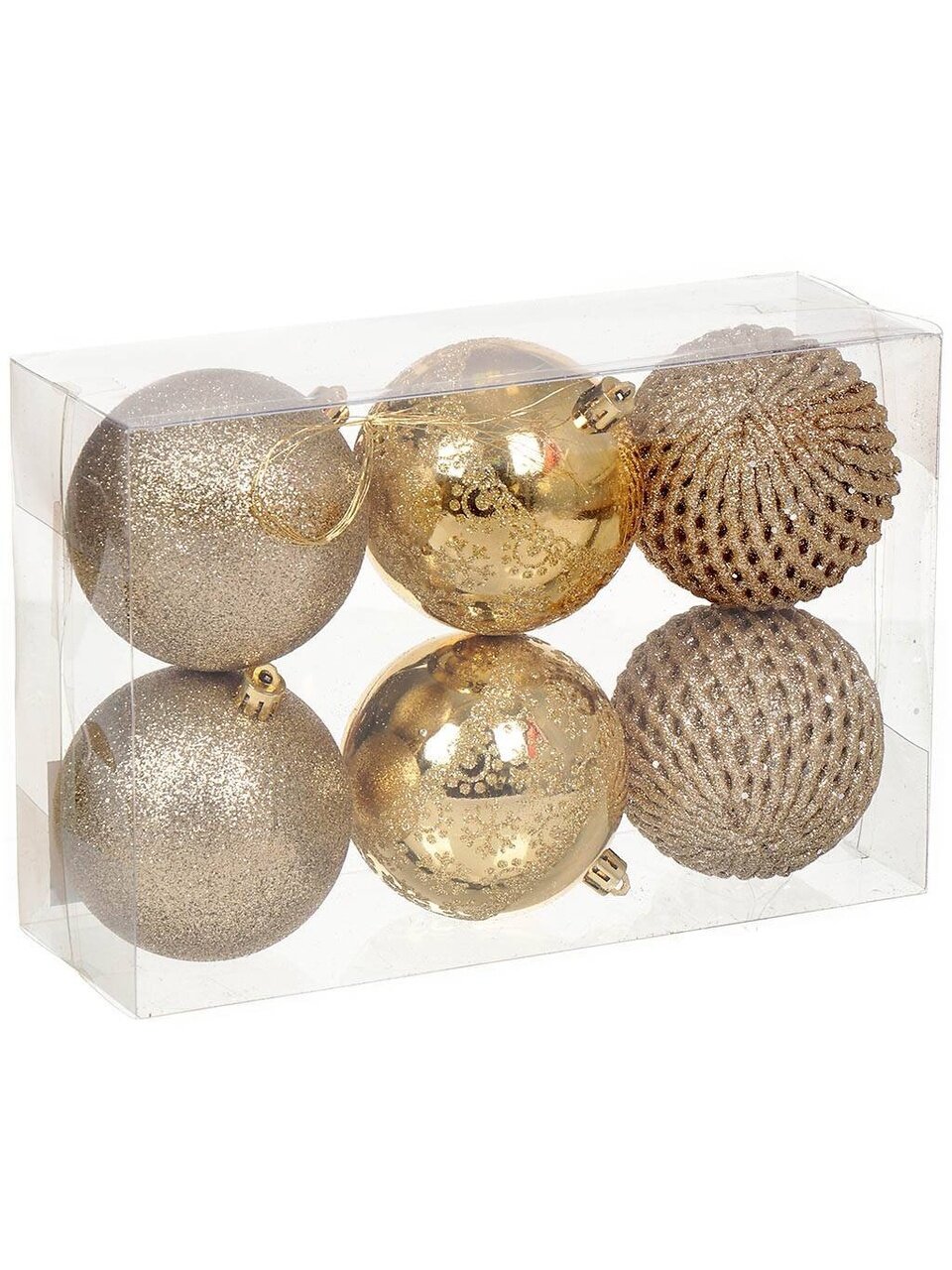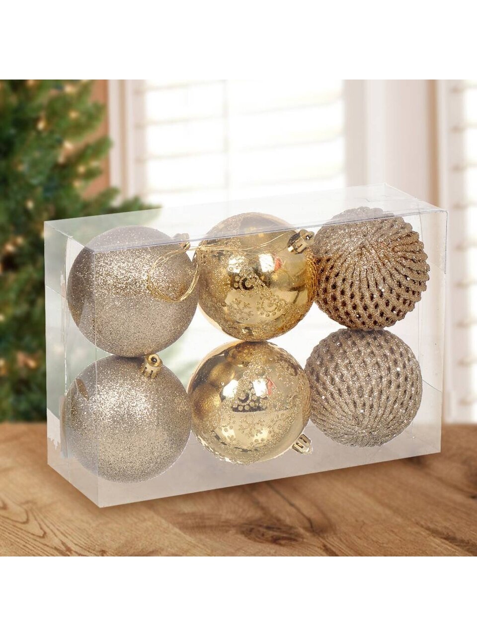 Елочные шары 8 см, 6 шт, золото: небьющиеся, блестящие, идеально для дома и улицы. Украсьте ёлку быстро и безопасно — без риска разбить.