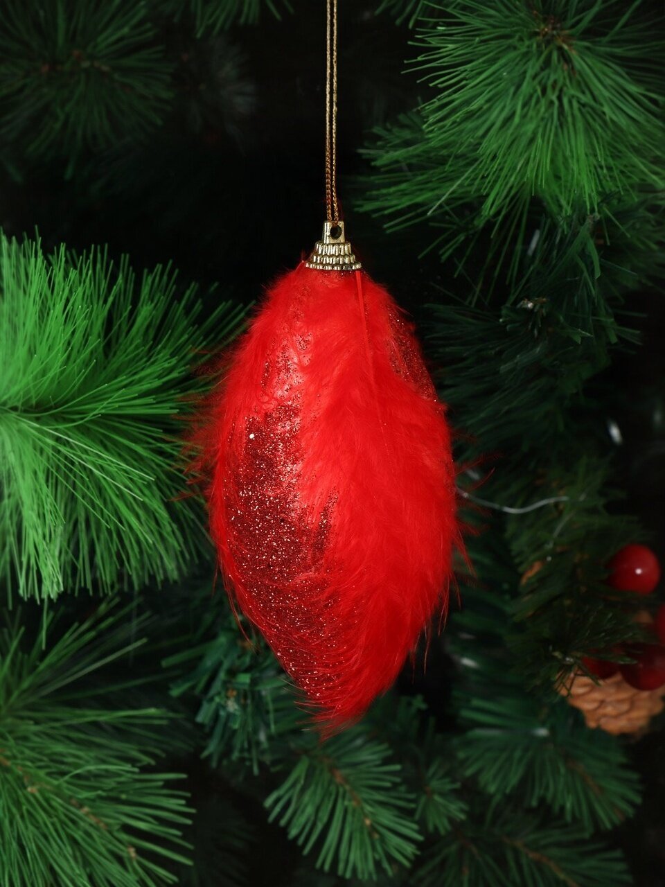Яркий красный елочный шар 11.5х6 см: небьющийся, с блестками, для уличной и домашней елки. Идеальный выбор для стильного и безопасного декора!