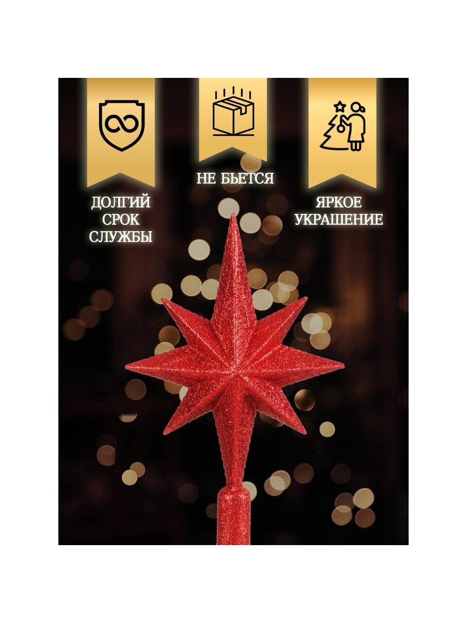 Верхушка на елку Звезда красная 25х16.5 см — яркий акцент для новогоднего декора, который не разобьётся и украсит даже уличную ель. Быстрая доставка и гарантия качества.