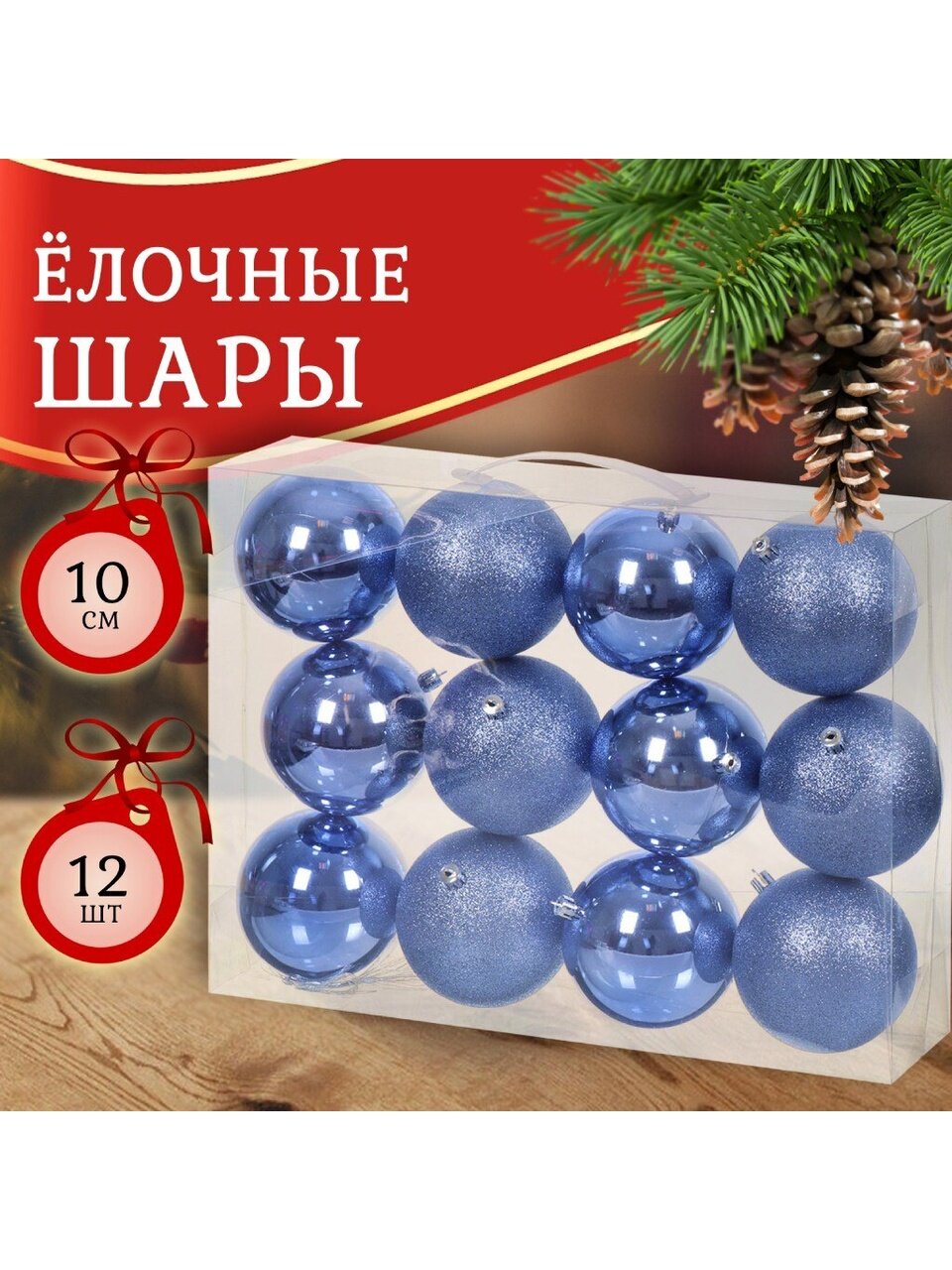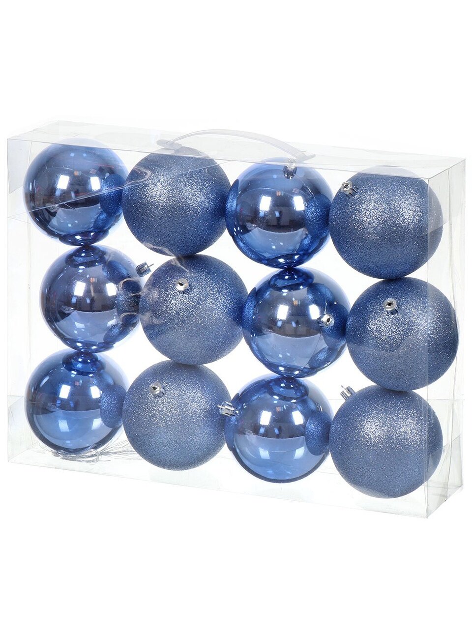 Елочные шары 12 шт, голубой, 10 см — эффектное решение для стильного новогоднего декора дома и улицы. Безопасный пластик, небьющиеся, в подарочной коробке.