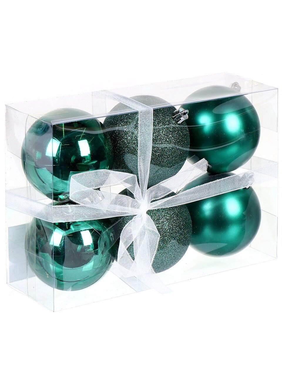 Елочные шары 8 см, набор 6 шт, зеленые: украсьте дом или улицу к Новому году — небьющиеся, яркие, в стильной коробке. Безопасно даже для детей и домашних животных.