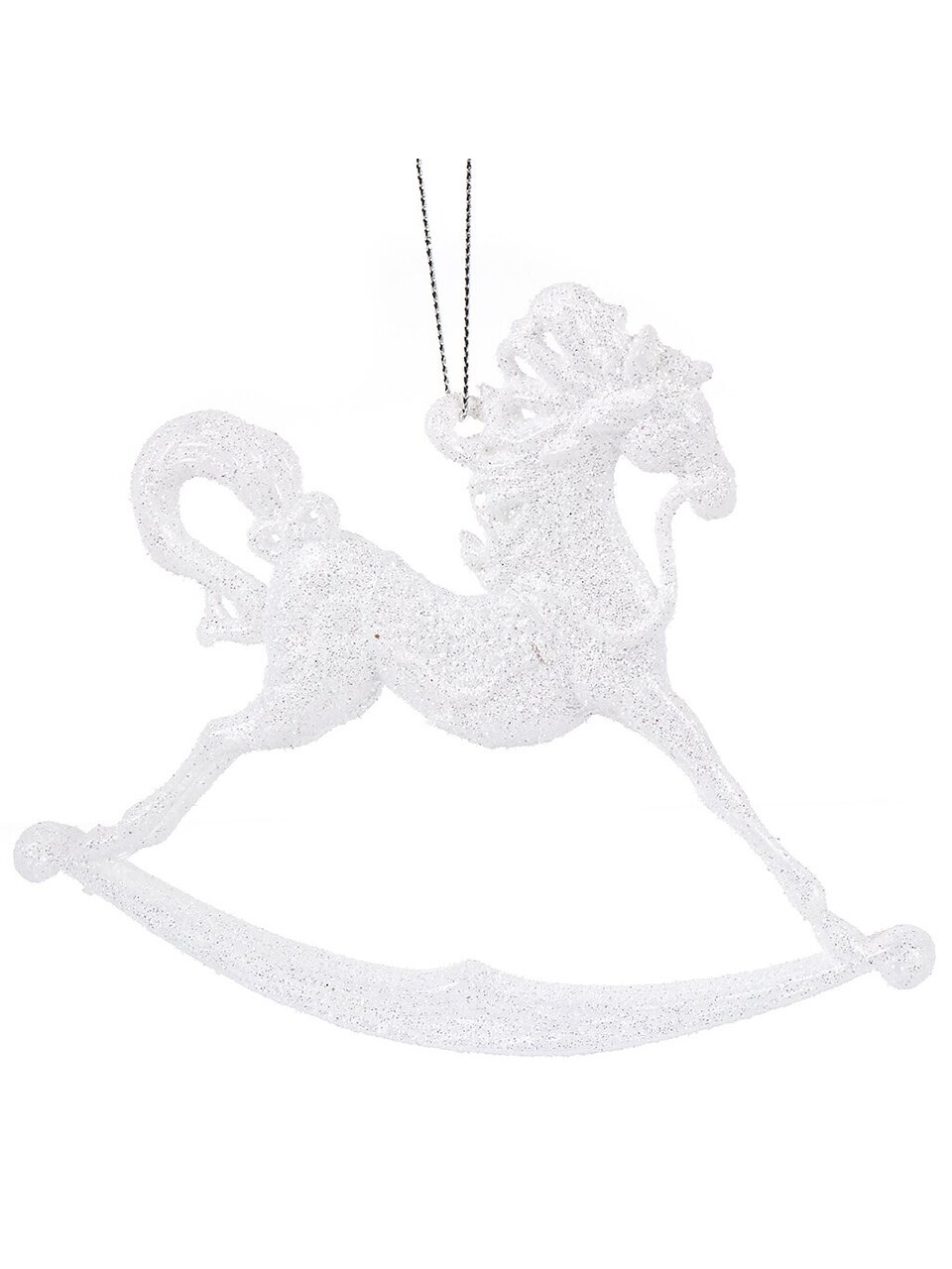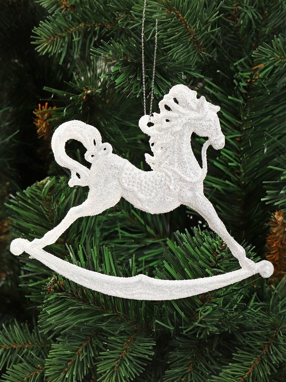 Большое белое елочное украшение Лошадка 14х12 см: стиль, безопасность и долговечность для зимнего декора дома и улицы