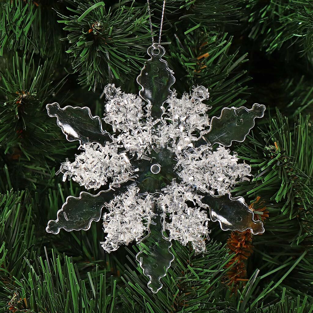 Прозрачная елочная снежинка 13 см — стильное небьющееся украшение для уличной и домашней елки. Безопасно для детей, эффектно сверкает на свету.