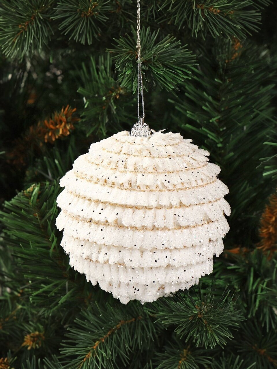 Белый елочный шар 10 см SYPMQF-1122015: эффектный акцент для новогоднего декора, прочный пластик, не бьётся — безопасный выбор для дома и улицы.