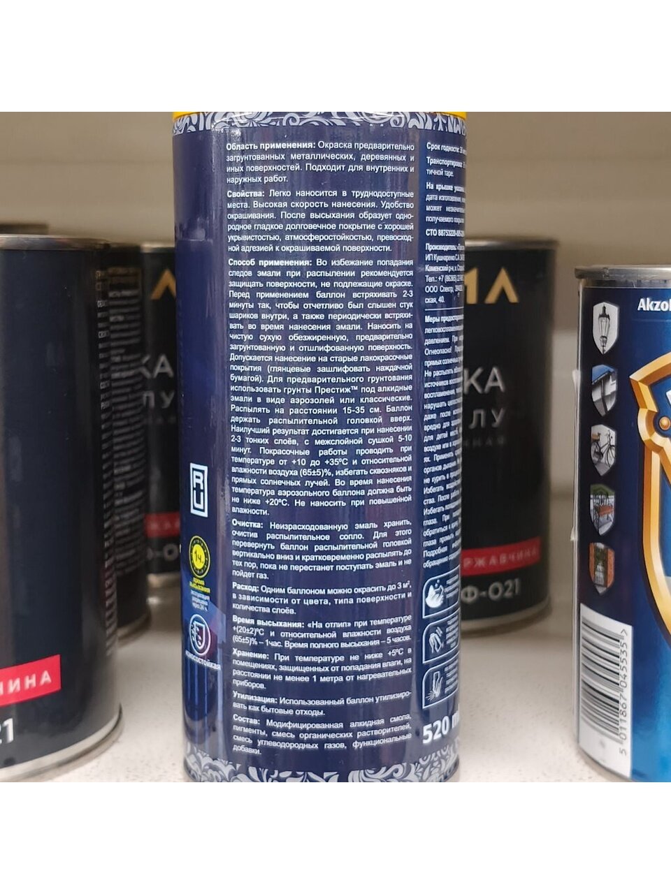 - Состав: модифицированная алкидная смола, пигменты, смесь органических растворителей, смесь углеводородных газов, функциональные добавки.