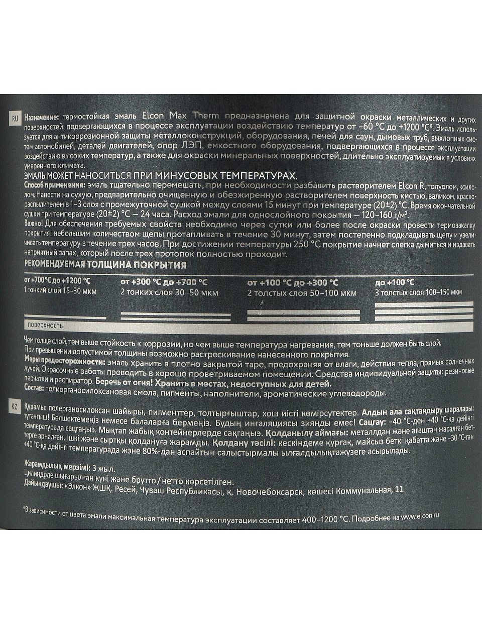 Закажите термостойкую эмаль Elcon 700°C по выгодной цене — защитите металл от жара и коррозии, получите долговечный результат с гарантией качества.