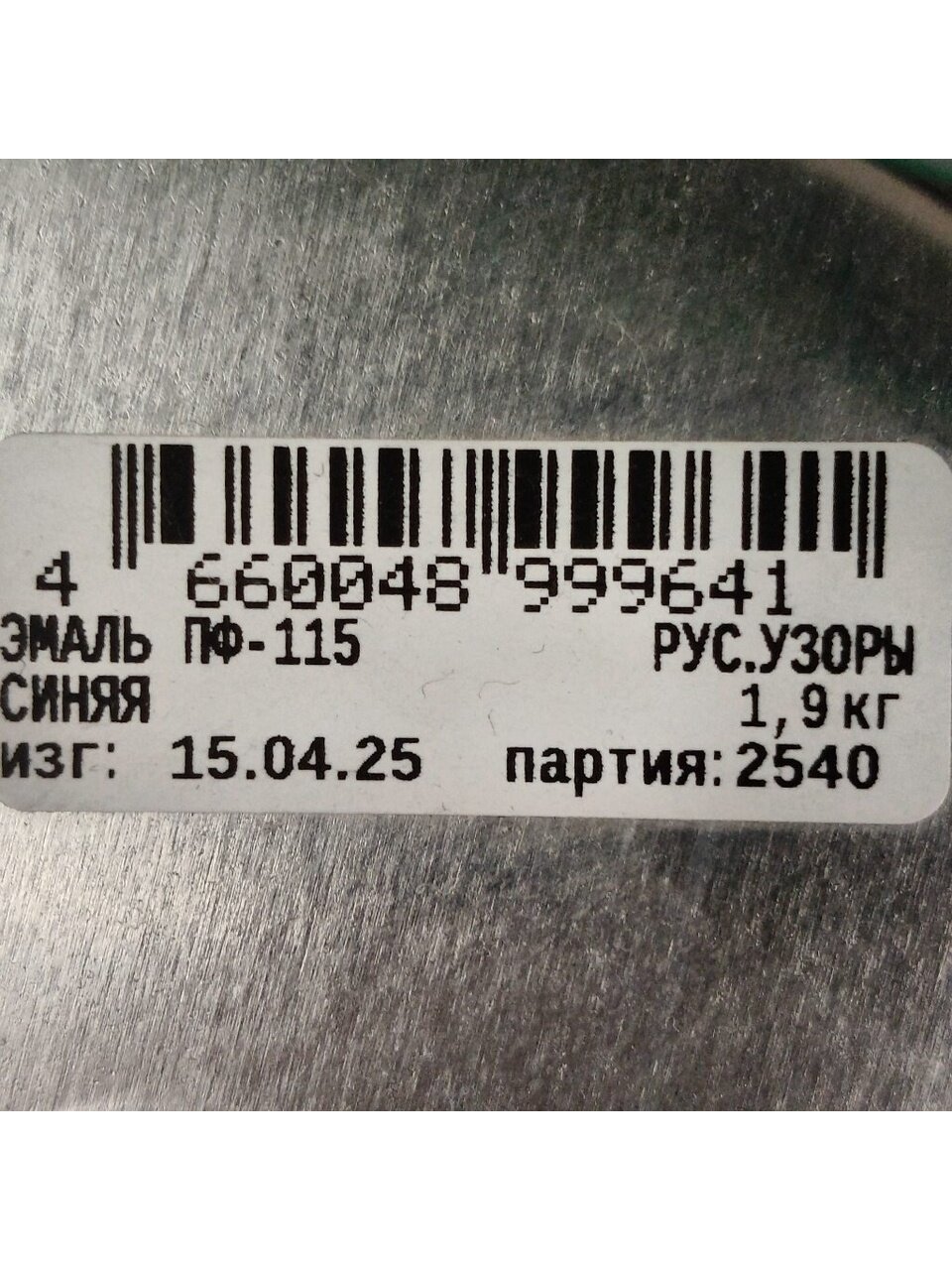 Вы можете приобрести «Эмаль Русские узоры, ПФ-115, алкидная, глянцевая, синяя, 1.9 кг» и другие товары в нашем интернет-магазине в Серпухове по низким ценам и с бесплатным самовывозом.