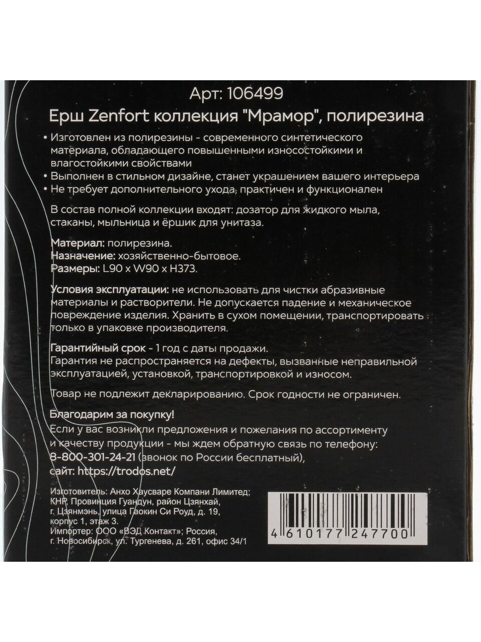 Вы можете приобрести «Ерш Zenfort, Мрамор, напольный, 8.8х8.8х36.5 см, полирезина, белый, 106499» и другие товары в нашем интернет-магазине в Иваново по низким ценам и с бесплатным самовывозом.