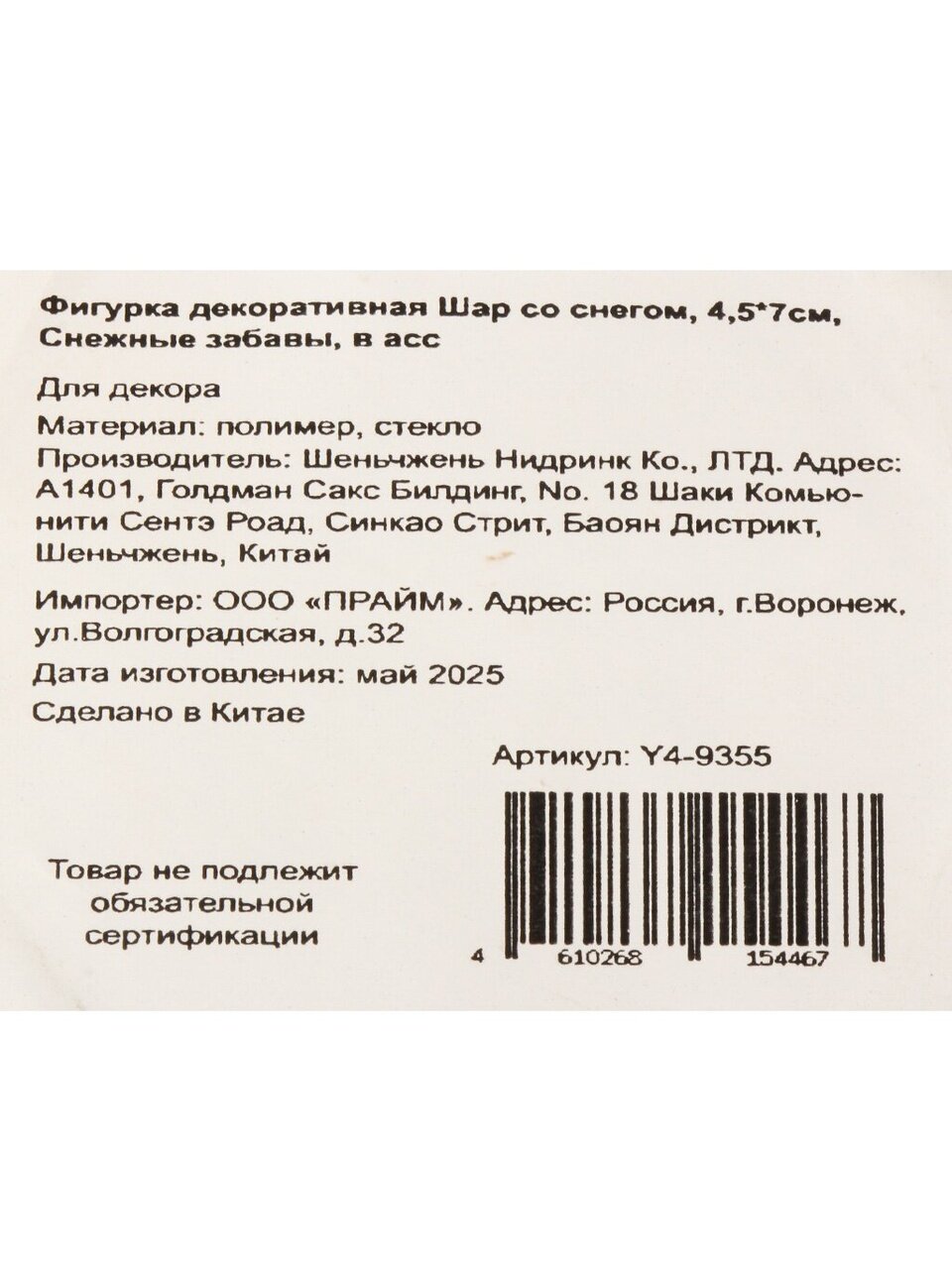 Вы можете приобрести «Фигурка декоративная Шар со снегом Снежные забавы, 4.5х4.5х7 см, в ассортименте, Y4-9355» и другие товары в нашем интернет-магазине в Армавире по низким ценам и с бесплатным самовывозом.