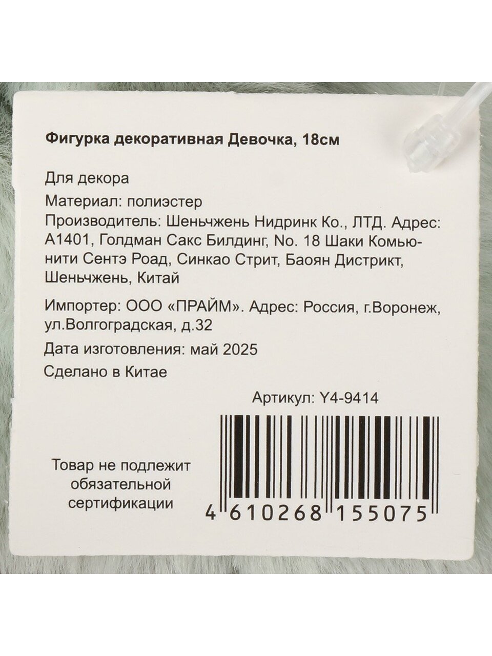 Фигурка выполнена из полиэстера — прочного и устойчивого к влаге материала, который легко очищается и сохраняет внешний вид надолго.