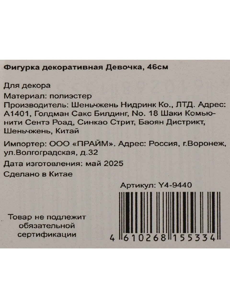 Декоративная фигурка Девочка 46 см из текстиля: стильный акцент для дома и дачи, оригинальный подарок, долговечный полиэстер, выгодная цена.