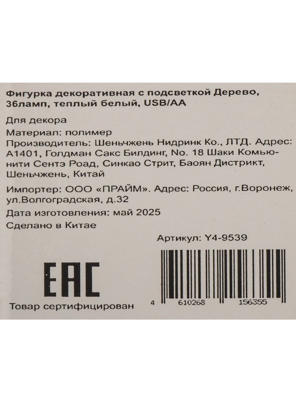 Вы можете приобрести «Фигурка декоративная полимер, Дерево, с подсветкой, 36 ламп, теплый белый свет, работа от USB или 3АА, Y4-9539» и другие товары в нашем интернет-магазине в Твери по низким ценам и с бесплатным самовывозом.