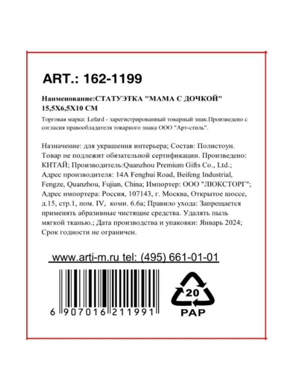 Вы можете приобрести «Статуэтка полистоун, Мама с дочкой, 15.5х6.5х10 см, 162-1199» и другие товары в нашем интернет-магазине в Астрахани по низким ценам и с бесплатным самовывозом.