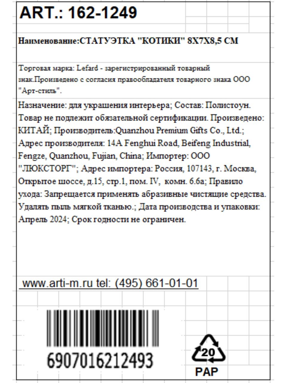 Часто спрашивают: «Как использовать такую статуэтку?», «Подходит ли для подарка на новоселье?», «Чем отличается от керамики?» — полистоун легче и прочнее керамики, не впитывает влагу и не боится перепадов температуры. Подарочная упаковка делает эту фигурку отличным вариантом для сюрприза друзьям, коллегам или близким. Если вы выбираете, какую статуэтку купить для декора или подарка, обратите внимание на универсальность и надежность этого изделия.