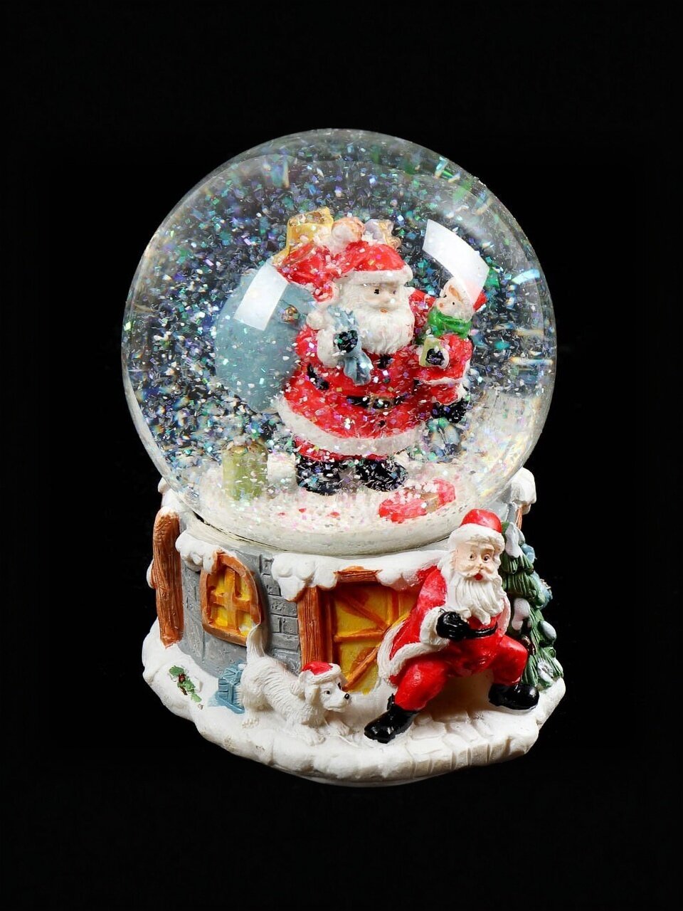 Шар со снегом - это потрясающий рождественский сувенир, который приведет в полнейший восторг детей и оставит ностальгические воспоминания о новогодних праздниках у взрослых. В прозрачном снежном шаре расположилась замечательная композиция - миниатюрный Санта в традиционном красном наряде с мешком подарков. Такой аксессуар будет здорово смотреться под новогодним деревцем, оживит книжную полку или письменный стол.