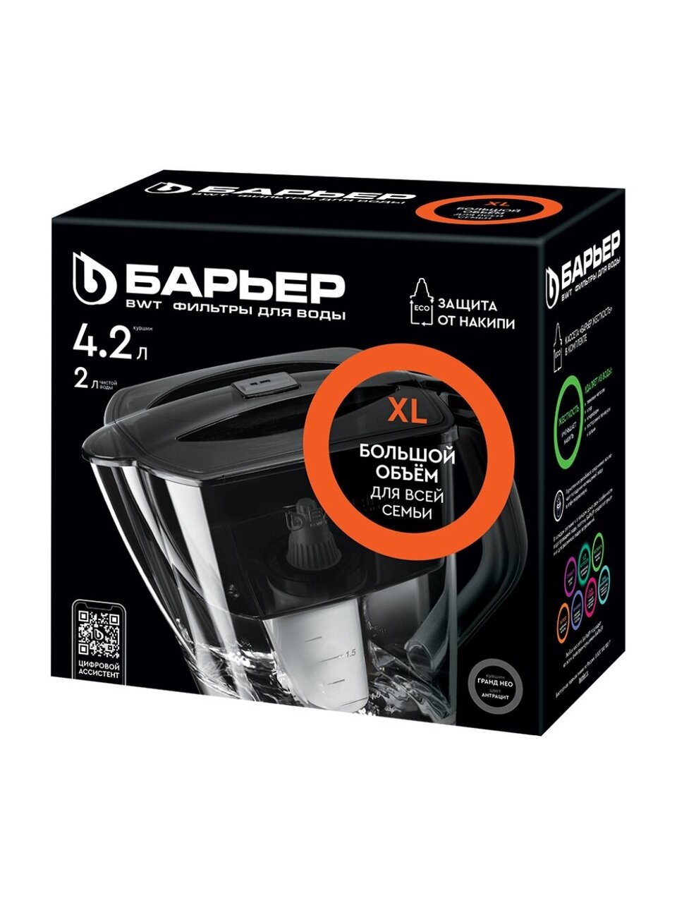 Вы можете приобрести «Фильтр-кувшин Барьер, Гранд Нео, для холодной воды, 1 ступ, 4.2 л, антрацит, В015Р00» и другие товары в нашем интернет-магазине в Старом Осколе по низким ценам и с бесплатным самовывозом.