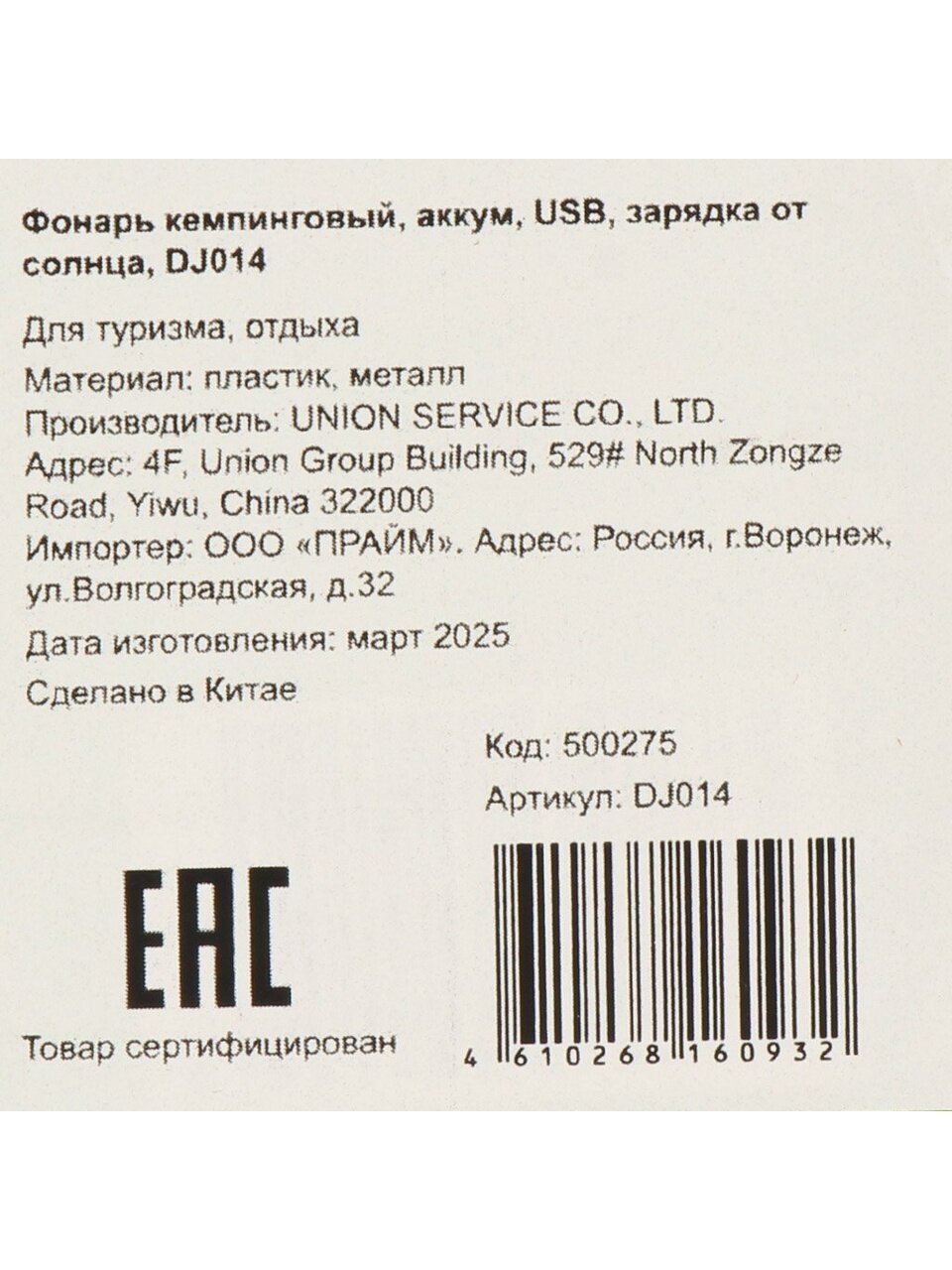 Вы можете приобрести «Фонарь кемпинговый встроенный аккумулятор, зарядка от USB, пластик, режим SOS, зарядка от солнца, DJ014» и другие товары в нашем интернет-магазине в Серпухове по низким ценам и с бесплатным самовывозом.