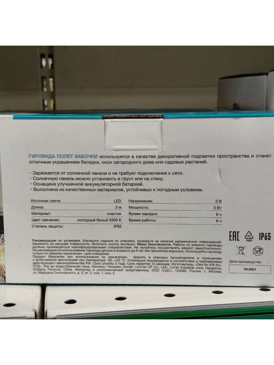 Вы можете приобрести «Гирлянда садовая Lamper, Каскад Полет бабочки, на солнечной батарее, грунтовая, 3 Вт, пластик, LED3м выносная солнеч. панель/аккум, холодное белое свечение» и другие товары в нашем интернет-магазине в Борисоглебске по низким ценам и с бесплатным самовывозом.