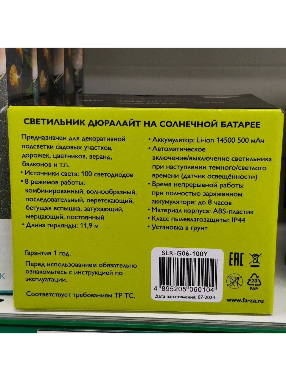 Вы можете приобрести «Гирлянда садовая ФАZА, SLR-G06-100Y, на солнечной батарее, наземная, пластик, желтый свет» и другие товары в нашем интернет-магазине в Тамбове по низким ценам и с бесплатным самовывозом.