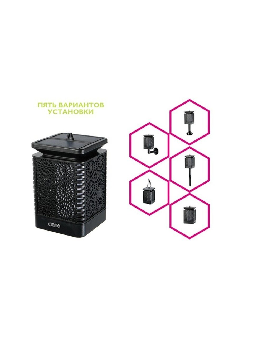 Установка не требует специальных навыков — светильник легко монтируется в грунт благодаря продуманной конструкции и пяти вариантам установки. В комплекте предусмотрена лампа, а встроенный источник питания — аккумулятор AA Ni-Mh 300 мАч 1.2 В — заряжается за 6-8 часов. Цвет корпуса — черный, что делает светильник универсальным решением для любого стиля оформления участка.