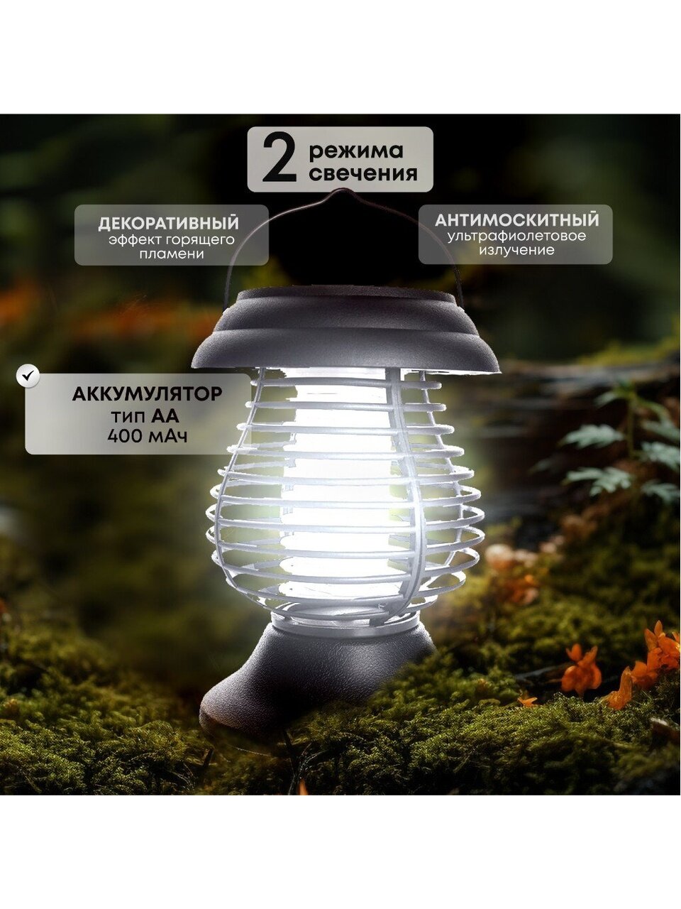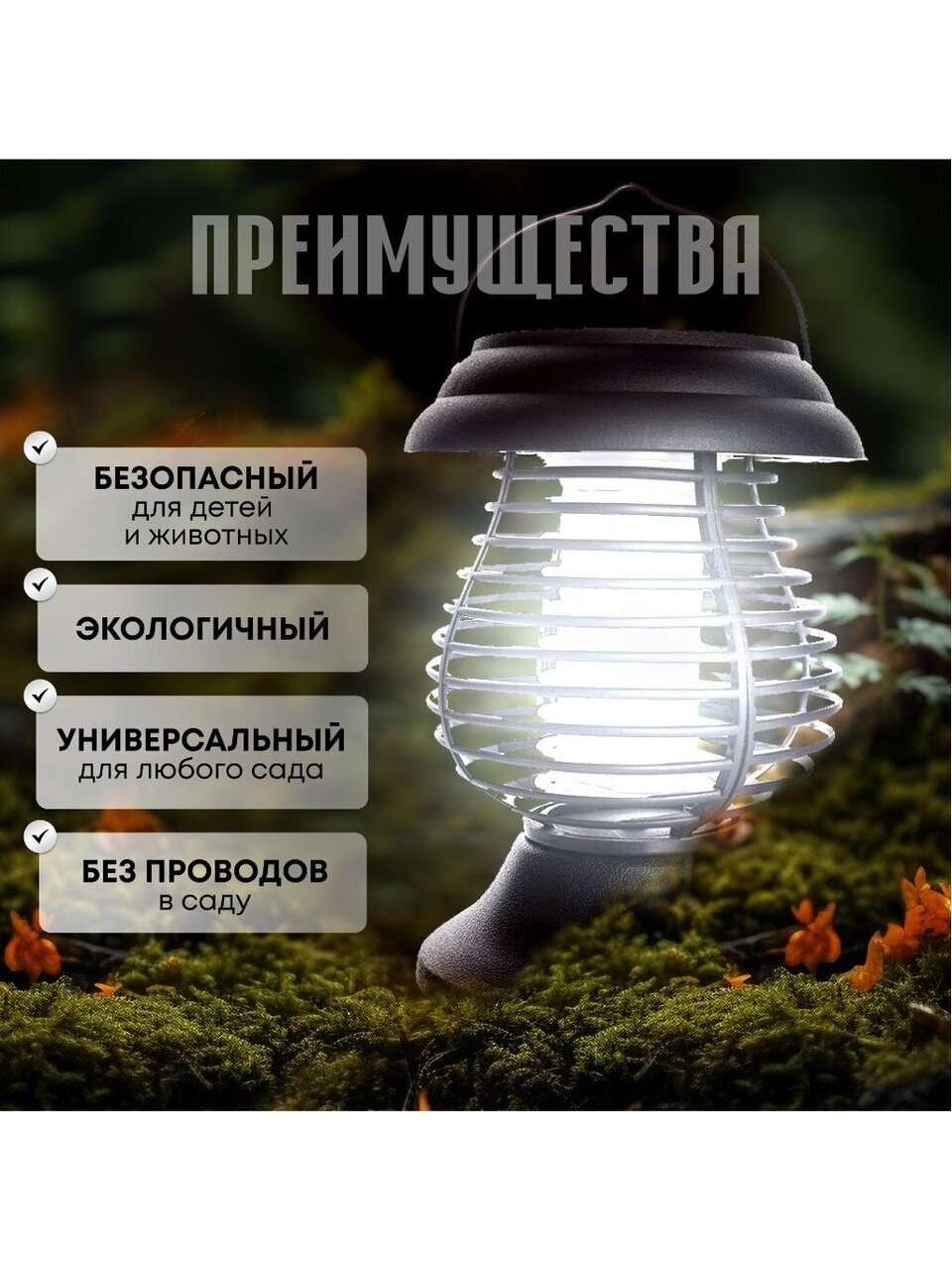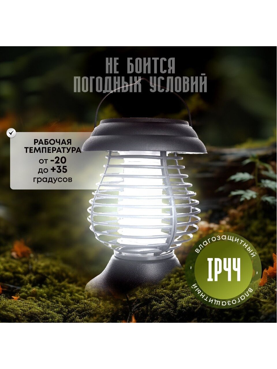 Антимоскитный светильник на солнечной батарее серии Functional предназначен для борьбы с насекомыми вне помещений, а также для подсветки сада. Светильник имеет 2 режима свечения – декоративный (с эффектом горящего пламени) и антимоскитный (УФ). Ультрафиолетовое излучение определенного диапазона привлекает комаров, мошек, мотыльков и других летающих насекомых, будучи совершенно безвредным для людей и животных. Подлетая к лампе, насекомые попадают на специальную сетку, находящуюся под напряжением, и погибают от электрического разряда. Светильник снабжен специальной решеткой, чтобы предотвратить возможность прикосновения к сетке. Это универсальное, экологически чистое устройство, работающее от солнечной батареи, использующей энергию солнца для зарядки встроенного аккумулятора. Светильник не требует подключения к сети, что позволяет устанавливать его на любые поверхности или подвешивать. Антимоскитный светильник на солнечной батарее заряжается даже при облачной погоде и устойчив к изменению погоды и температуры.