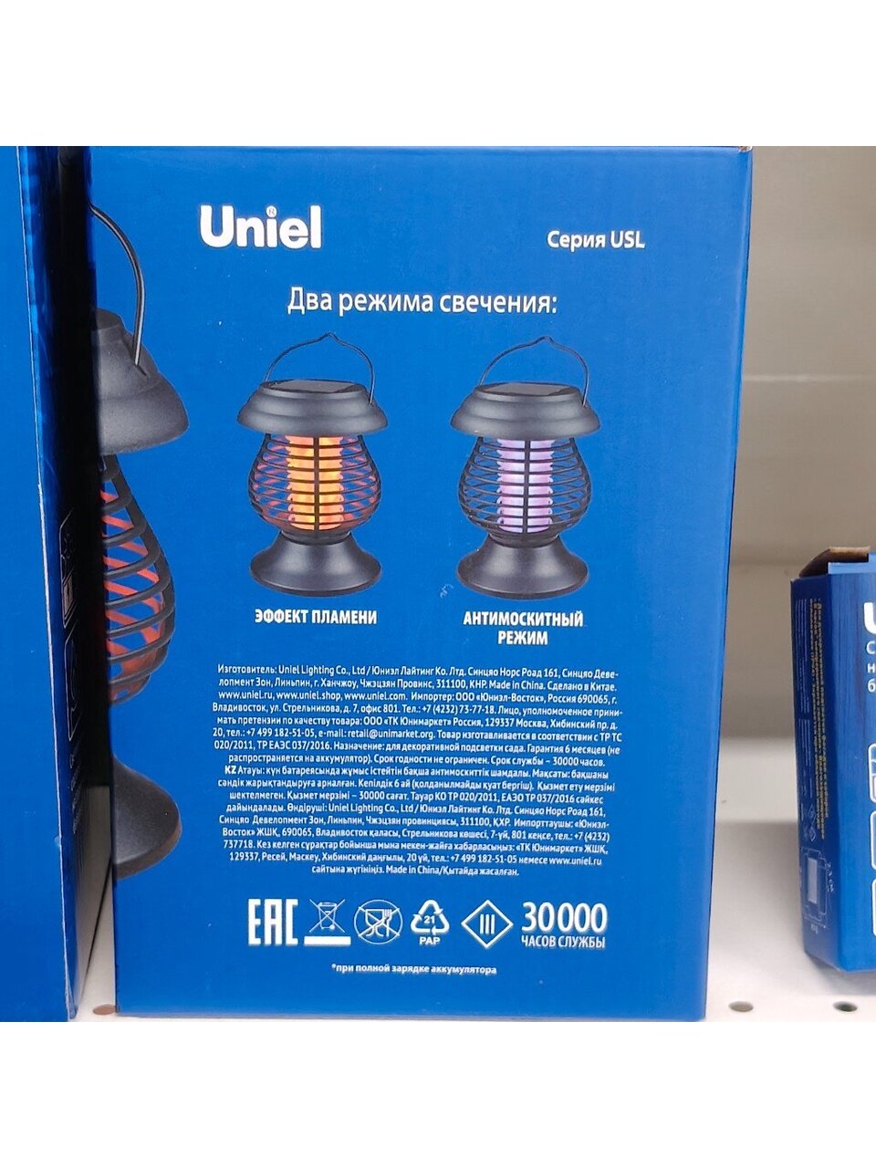 Вы можете приобрести «Фонарь садовый Uniel, Bug Zapper USL-F-300/PМ310, на солнечной батарее, настольный, пластик, 13х31 см, 13 светодиодов» и другие товары в нашем интернет-магазине в Твери по низким ценам и с бесплатным самовывозом.