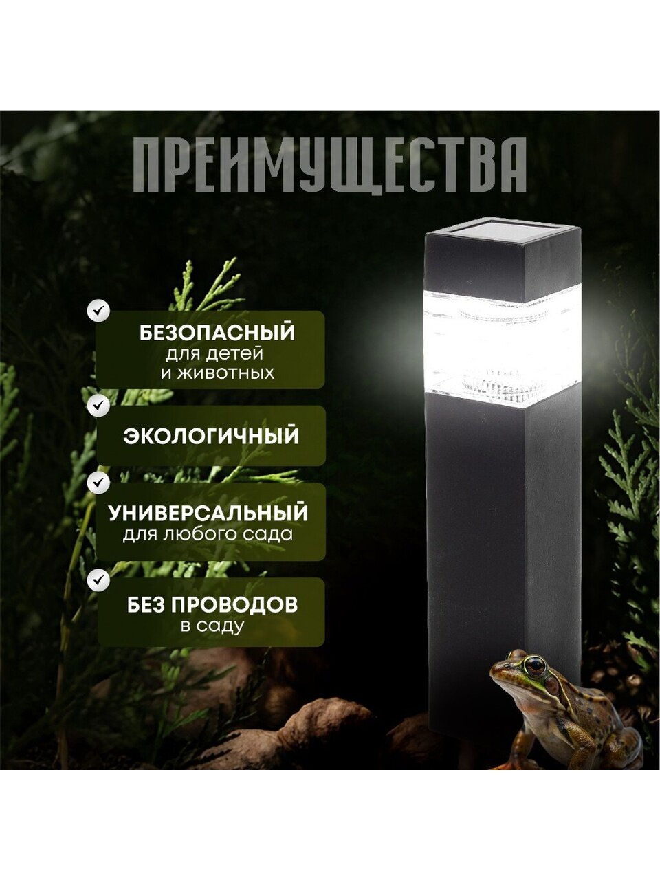 Светильник предназначен для освещения пешеходных зон, скверов, парков, территории загородных резиденций, домов отдыха, пансионатов. Декоративные фонари для улицы имеют не только функциональное, но и эстетическое значение. Данная модель декоративных садовых фонарей — это самостоятельное украшение любой территории. Декоративный садовый светильник на солнечной батарее не требует дополнительных источников питания. Аккумуляторные батареи заряжаются в светлое время суток от солнца. С наступлением темноты светильник включается автоматически, используя ранее накопленную энергию. Фонарь выполнен из качественных материалов, что обеспечивают долговечность и надежность. Уличные светильники отличаются укрепленным корпусом, хорошей влагостойкостью. Такие изделия будут одинаково хорошо смотреться и на участке, и на веранде. Он создает особенно уютную и теплую атмосферу, подчеркивая ваш вкус.