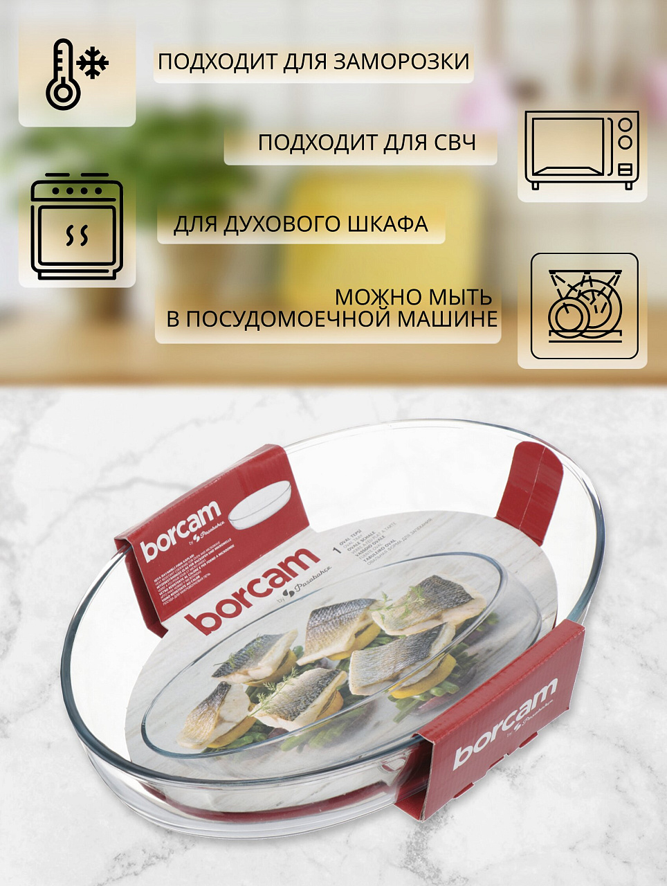 Да, форма Borcam подходит для использования и в микроволновой печи, и в духовке. Стекло выдерживает высокие температуры и не боится резких перепадов.