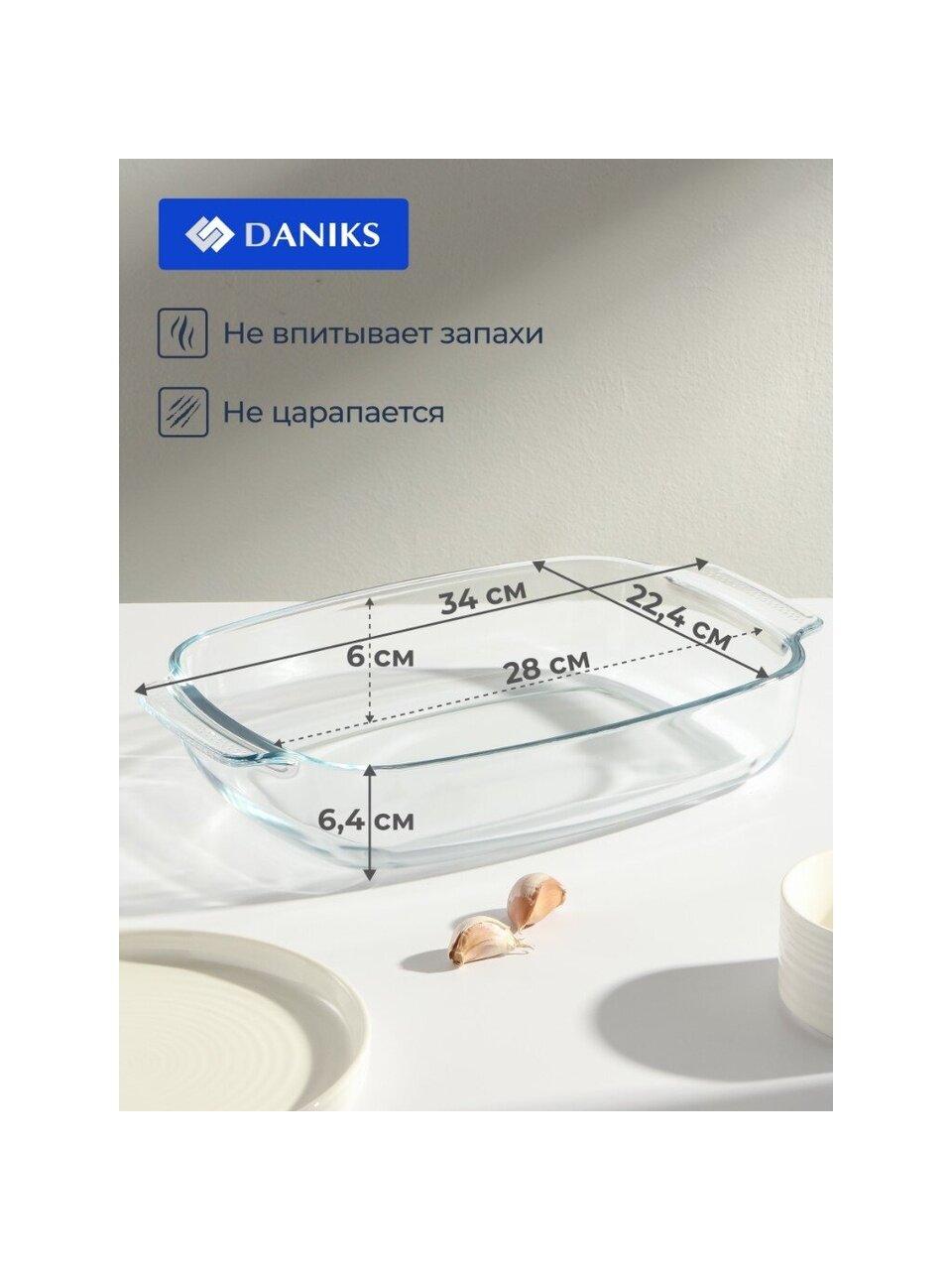 В отличие от металлических и керамических аналогов, стекло не вступает в реакцию с продуктами и сохраняет натуральный вкус блюд. Если вы ищете, чем отличается стеклянная форма от металлической — стекло проще в уходе, не царапается, не ржавеет и не требует антипригарного покрытия. Благодаря отсутствию рифленого дна, форма Daniks легко очищается даже после запекания жирных продуктов.