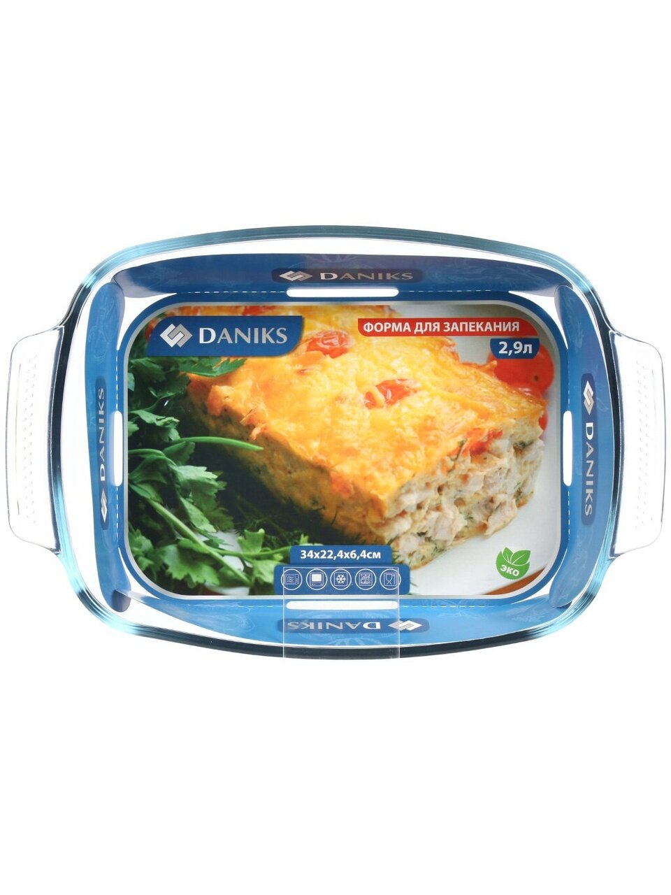 Форма для запекания Daniks 2,9 л — универсальное стеклянное решение для духовки и СВЧ: готовьте мясо, рыбу, пироги без риска пригорания и сложной мойки.