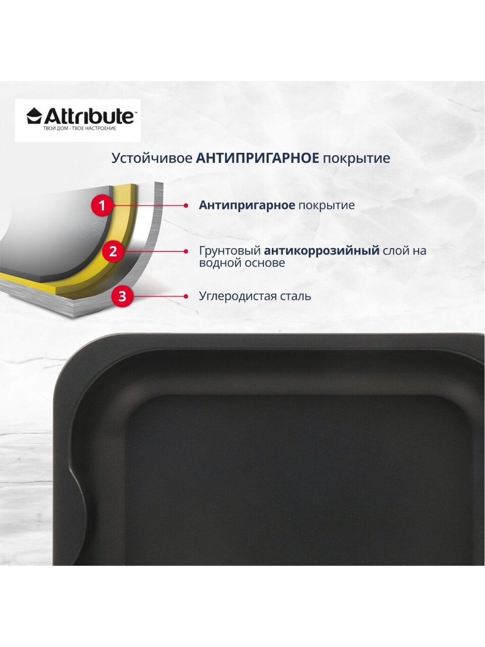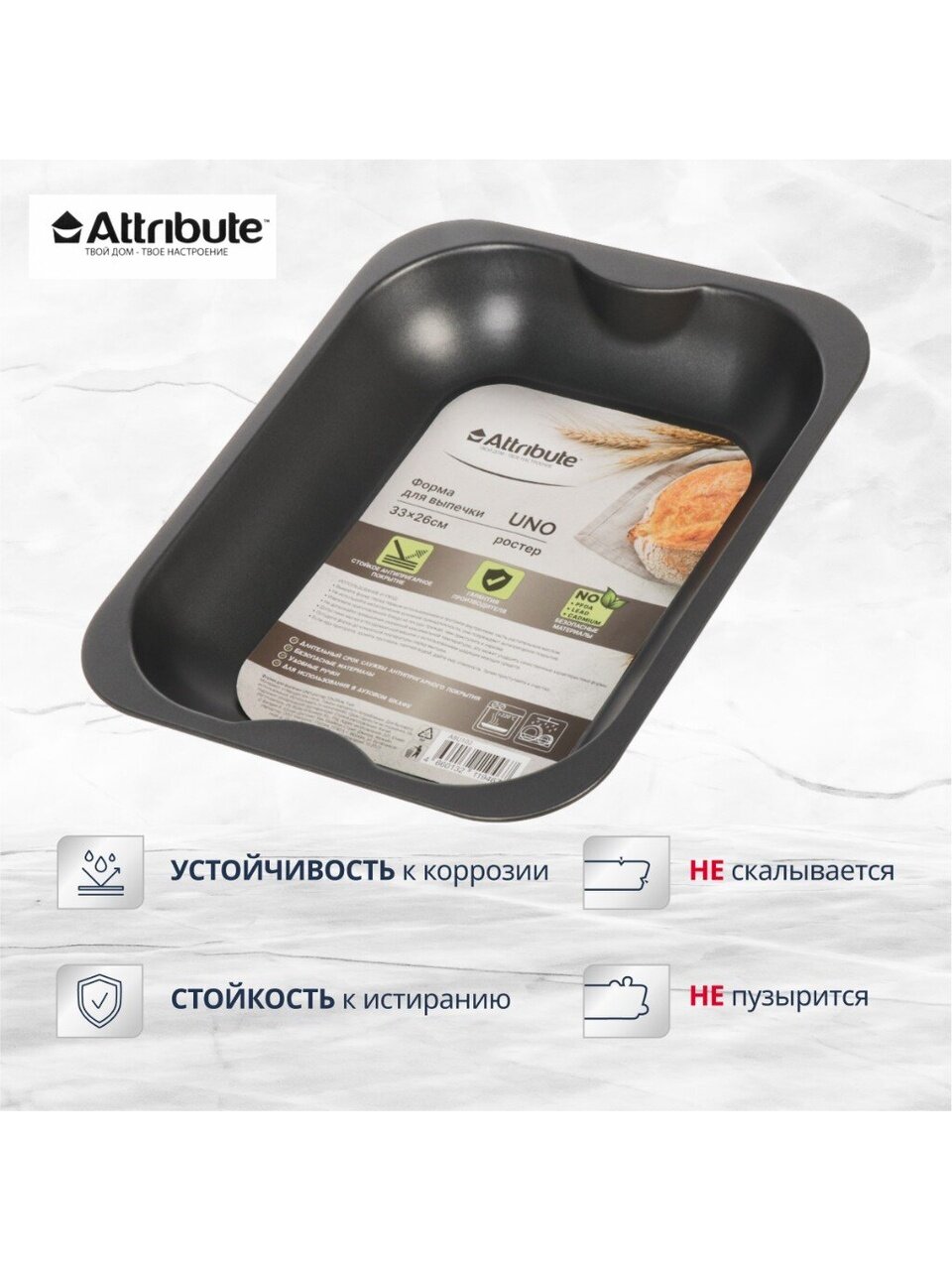 Форма для запекания Attribute UNO 26х33 см — антипригарная углеродистая сталь для идеальной выпечки и мяса без пригорания. Решение для дома и дачи.