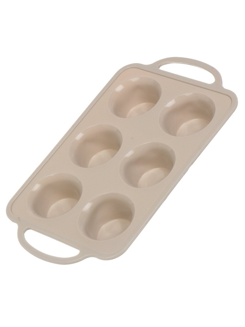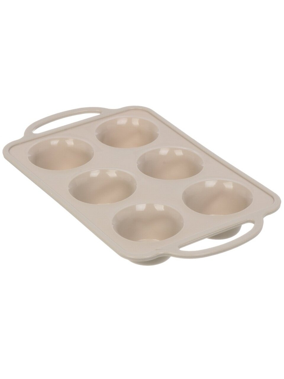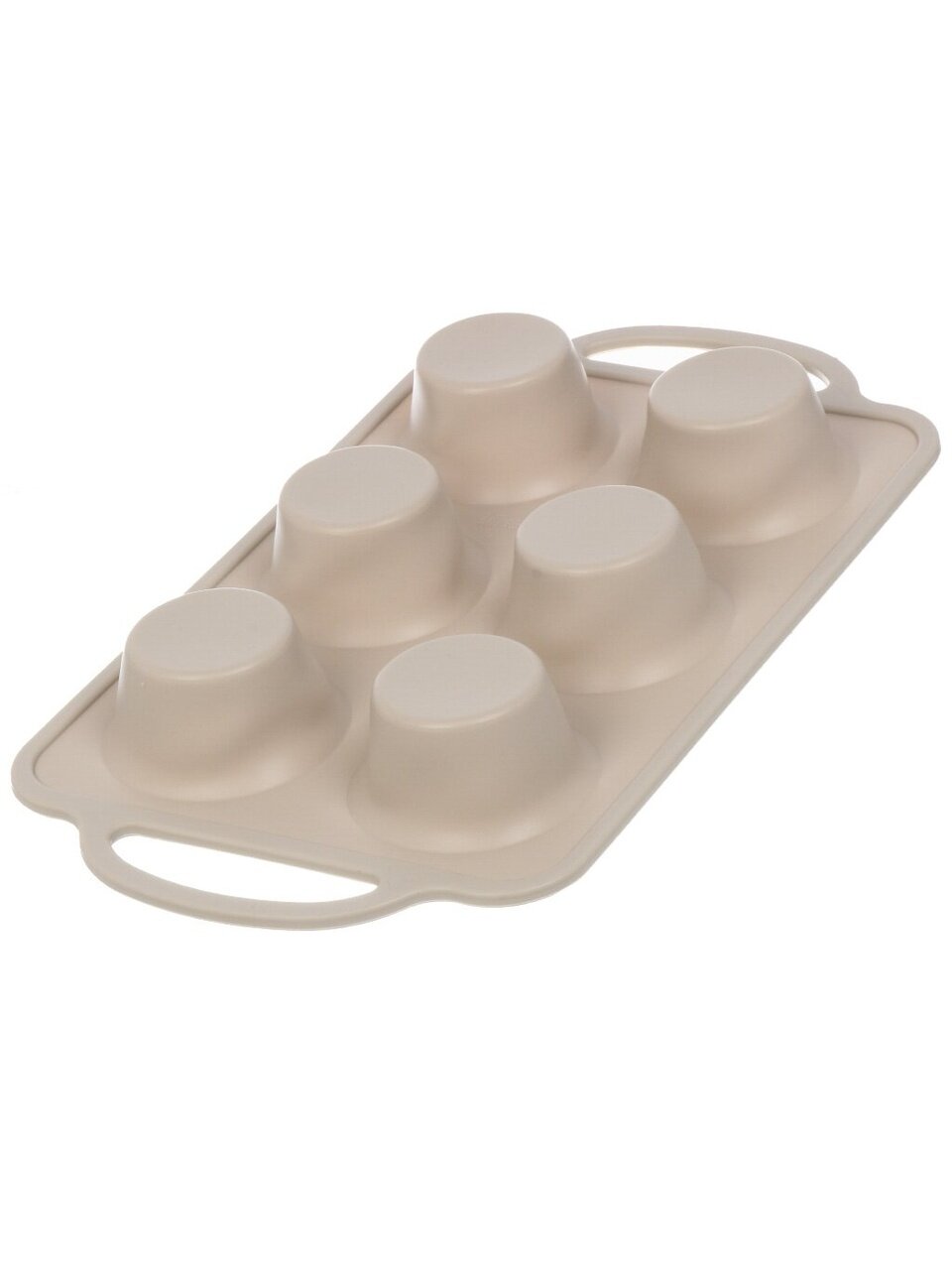 Форма рассчитана на 6 стандартных кексов, размер каждой ячейки оптимален для классических маффинов и капкейков (размер формы 27х18,5 см, объем 0,1 л на ячейку).