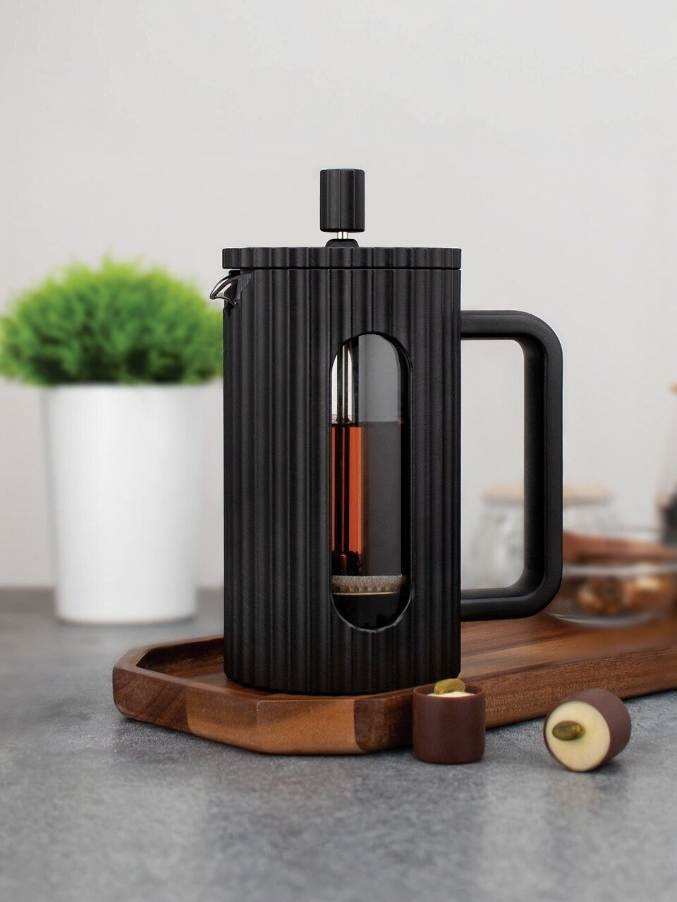 Френч-пресс - это уникальное сочетание стиля, прочности и функциональности, которое станет идеальным дополнением вашей кухни. Изготовленный из высокопрочного стекла и надежной нержавеющей стали, он позволит приготовить ароматный и насыщенный кофе или чай всего за несколько минут.